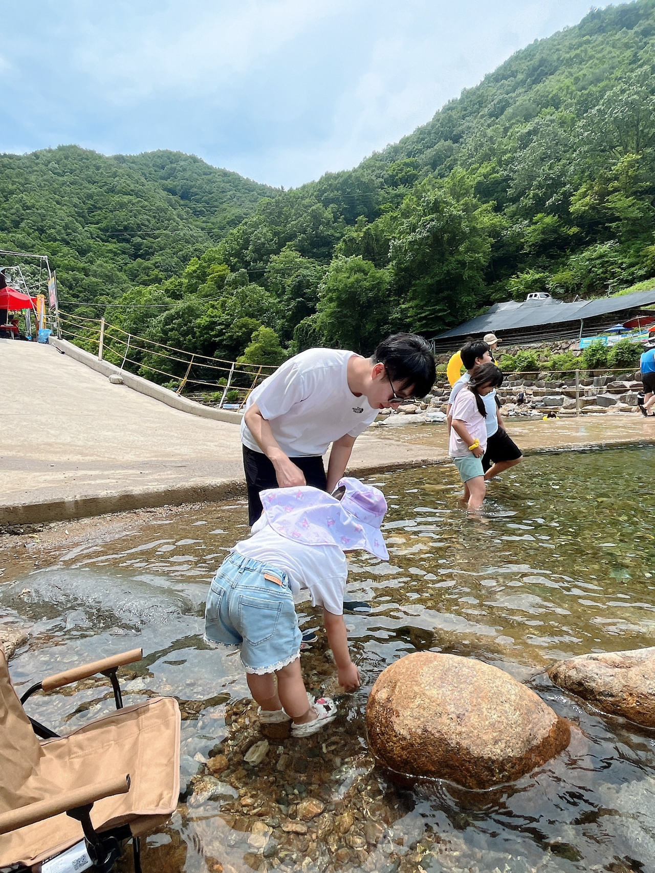 이번에 간 계곡은 아이 인생 첫 계곡이었다. 4살이었던 작년까지만 해도 수지가 너무 작고 어려서 계곡은 조금 위험할 것 같았다. 그래서 물 놀이터나 호텔 내 어린이 수영장에 데리고 갔었는데 지금 5살이 된 수지는 계곡에서도 충분히 잘 놀 것 같아서 설렘을 안고 수지와 첫 계곡을 맞이했다.