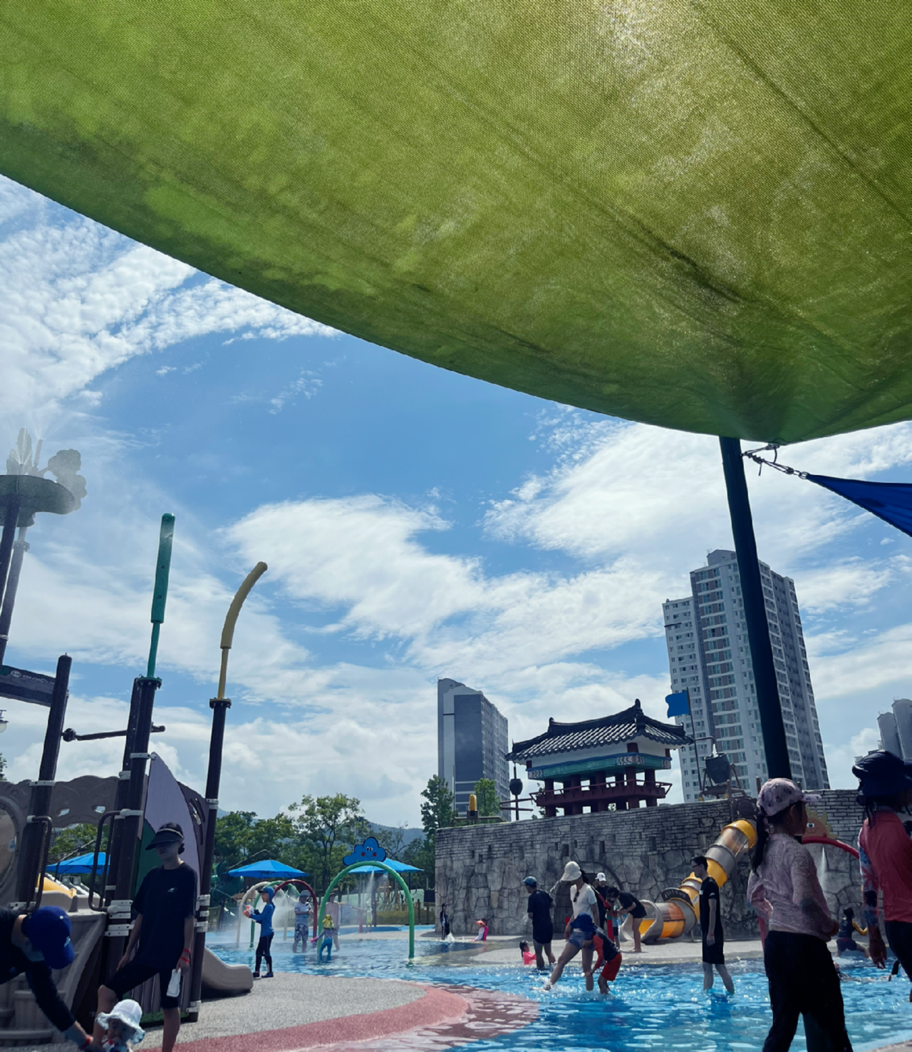 물놀이터 안에는 가족단위로 온 사람들이 많이 있었다. 물놀이터 입장은 인원수 제한이 있어서 사람들이 많다고 해도, 그리 복잡하지 않고 놀기에 딱 좋았다.