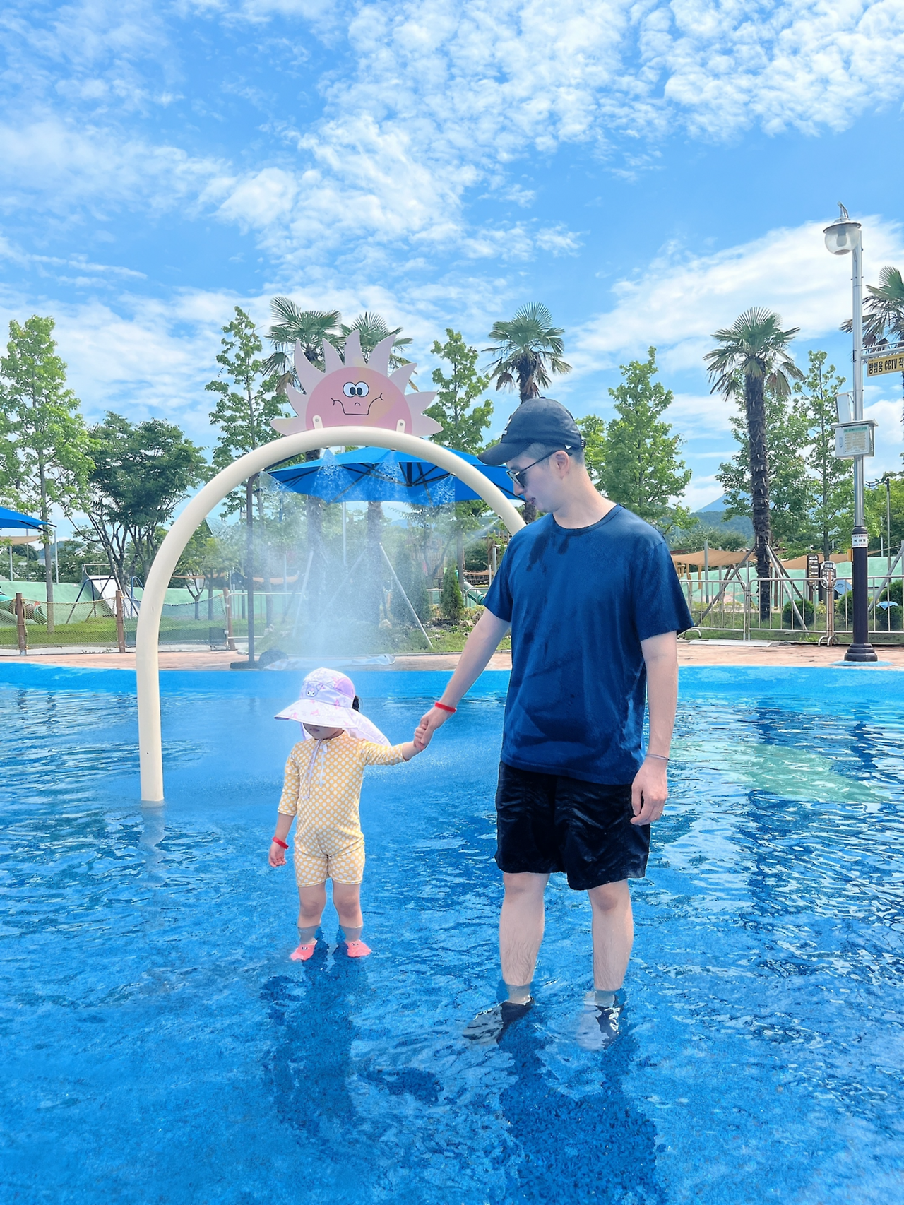 남편은 아이와 같이 물놀이터를 몇 번 가봤는데 나도 같이 간 건 이번이 처음이다. 말로만 듣고 사진으로만 보던 물놀이터를 직접 보니 훨씬 좋았고 너무나 청량하고 밝은 분위기였다. 워터파크 축소판이었다. 어쩜 이렇게 잘 만들었을까 감탄하며 들어갔다.