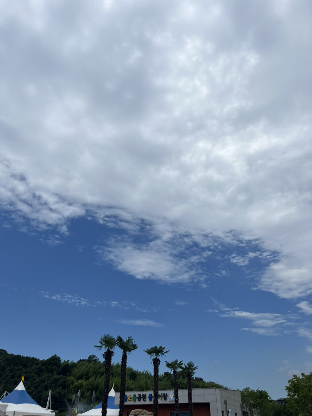 맑개 개인 하늘은 ‘내가 바로 여름하늘이야’라고 소리치듯 선명했고 청량한 여름 색감이 뚜렷했다. 꼭 해외 휴양지 같은 느낌이었다.