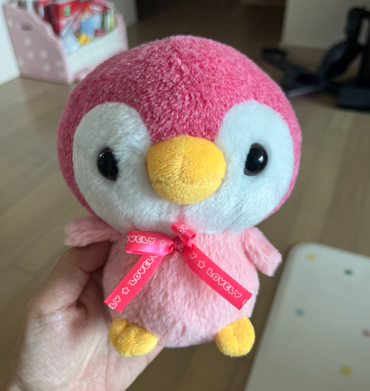 남편이 수지에게 뭔가 사주고 싶다고 했다. 기념품샵에서 수지는 바로 핑크색 펭귄 인형 하나를 골랐다. 보자마자 그게 제일 마음에 들었나보다. 수지는 펭귄 인형을 너무 좋아하며 손에서 놓지 않았다.
