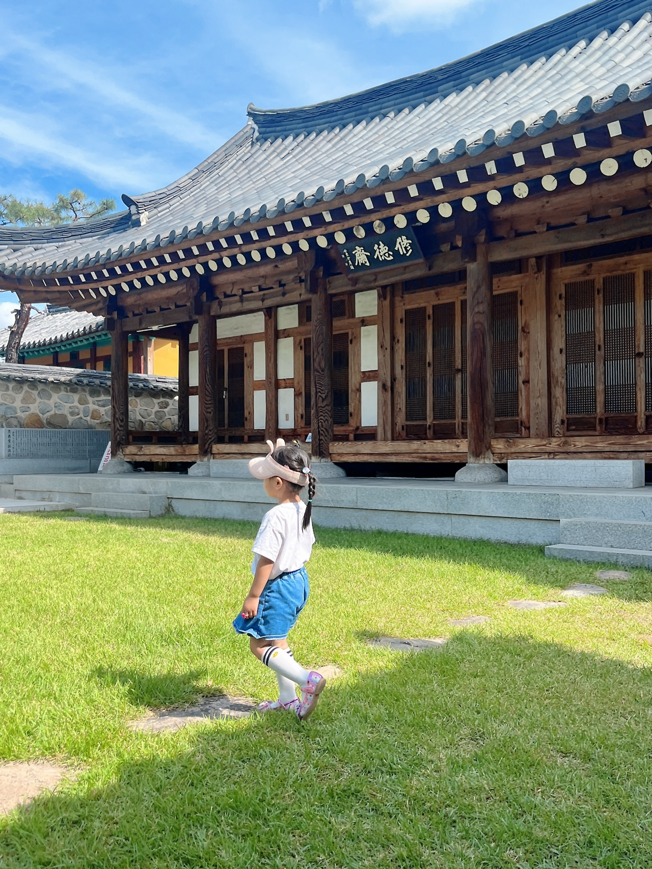 그렇게 경절사 안을 잠시 구경하고 마당에서 징검다리 밟기 놀이도 하고 달리기도 하면서 신나게 놀았다. 한옥 배경 때문인지 마당에서 해맑게 웃으며 노는 아이의 모습은 참 평화롭고 편안하게 느껴졌다. 해맑은 웃음은 더 빛을 발하고, 아이를 비춘 햇살도 더 환하게 느껴졌다.