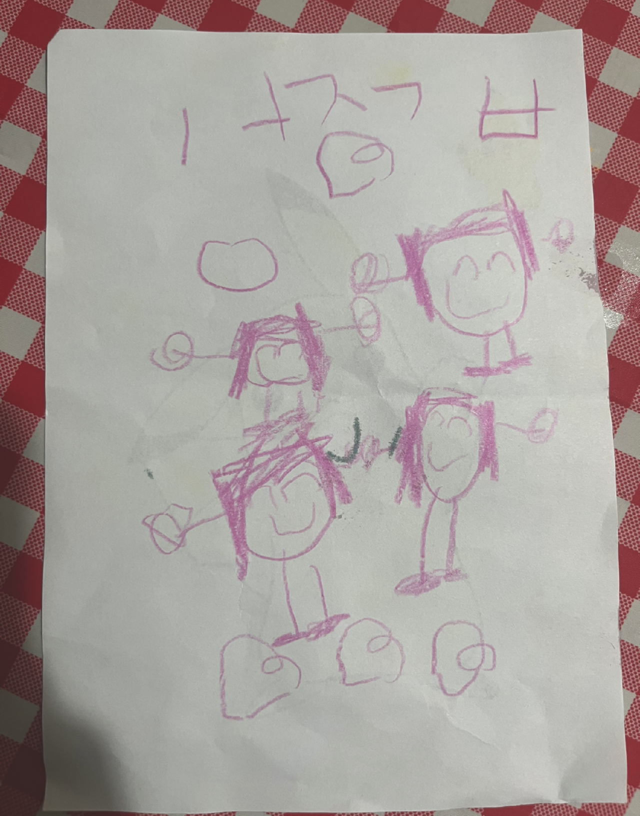 이렇게 해서 그림 속 우리 식구는 네 명이 되었다. 그림 속 우리 식구는 환하게 웃고 있었다. 수지 마음속 우리 식구의 모습인가 보다. 이 그림을 보는데 행복했다.