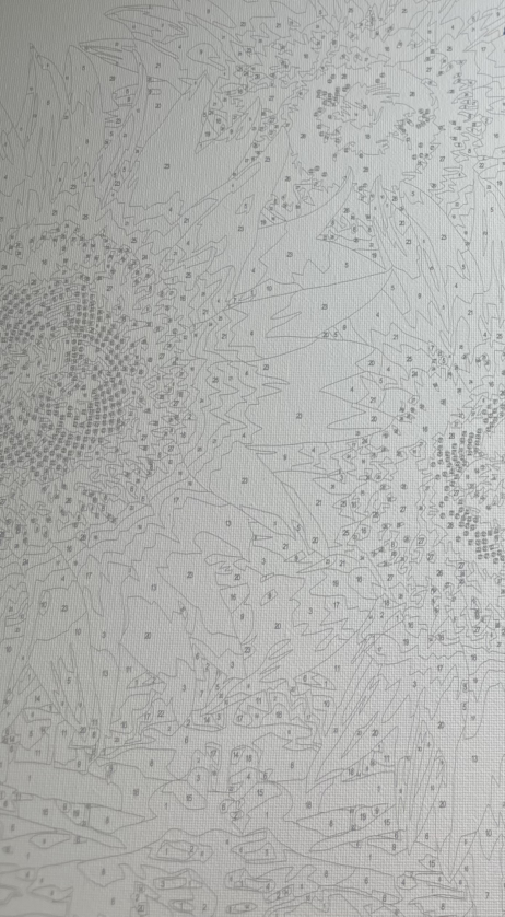 그리고 명화그리기 세트가 도착했는데 처음 열어본 순간 굉장히 촘촘한 밑그림에 새끼손톱 10분의 1 정도 되는 크기에도 물감 번호가 매겨져 있는 걸 보고 벙 찌면서 많이 당황했다.