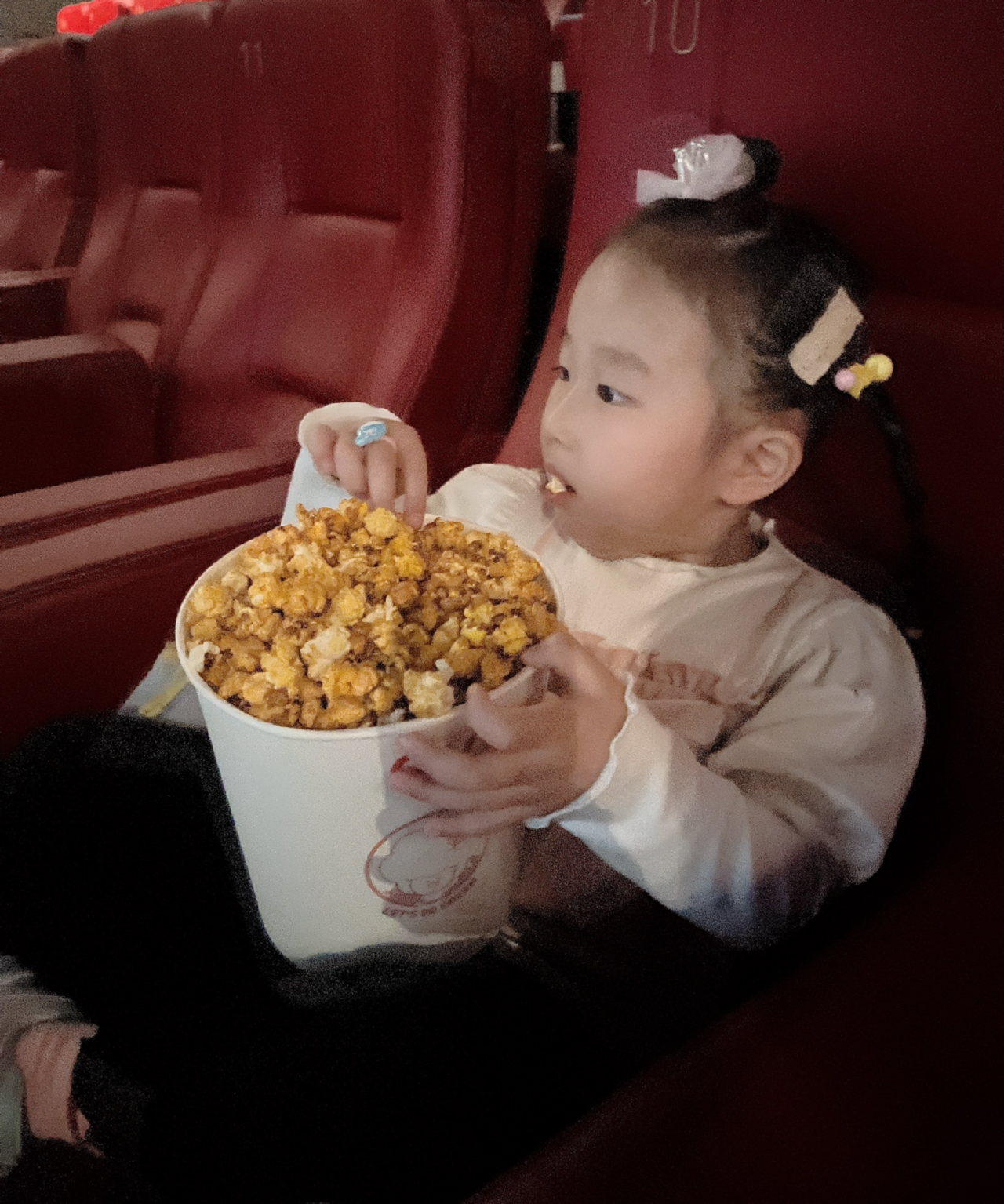 그 덕분인지 수지는 조금 더 편안해보였다. 그리고 영화 볼 땐 팝콘을 먹어야 한다며 자기 몸만 한 팝콘을 들고 잘 먹는 게 너무 귀여웠다.