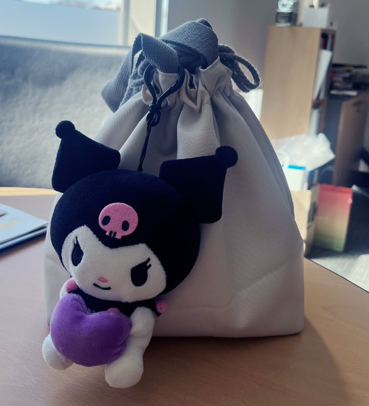 이날부터 난 커다란 인형 키링을 단 도시락 가방을 들고 회사에 출근하고 있다. 내 사무실 책상 한쪽 옆에 도시락 가방을 놔두는데, 보라색 하트를 들고 있는 쿠로미가 존재감을 확실히 나타내고 있다. 문득 눈을 돌리다 인형과 눈이 마주치면 "엄마 선물이야" 하던 수지의 귀여운 모습이 떠올라 저절로 웃음이 난다.