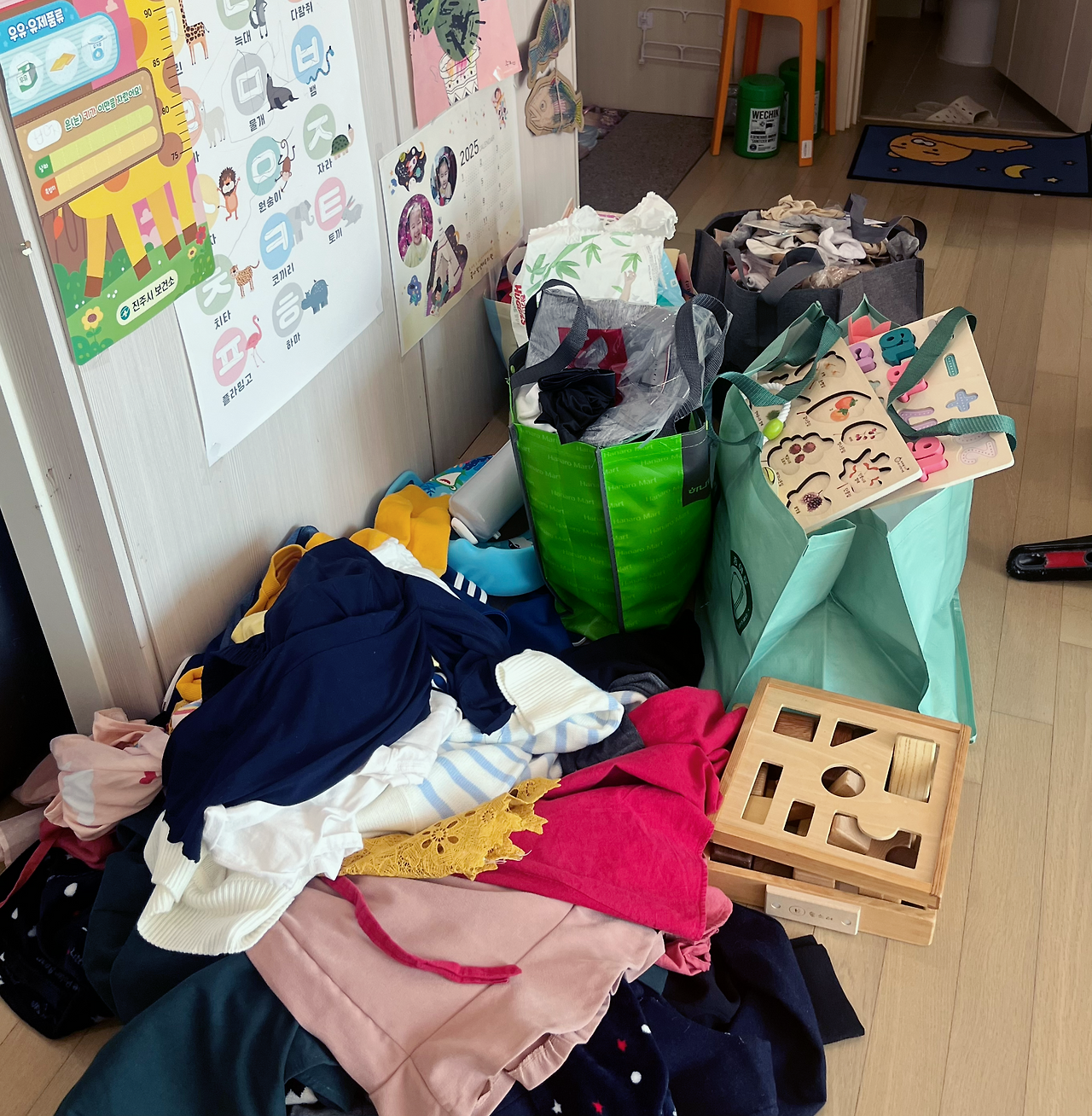 장난감은 기부는 하지 못하고 버리게 되었는데, 이것도 양이 얼마나 많은지 깜짝 놀랐다. 쓸만한 장난감은 중고로 팔아도 되는데, 중고로 팔 수도 없는 다시 쓸 수 없는 장난감들이 너무 많아 그냥 버릴 수밖에 없었다.