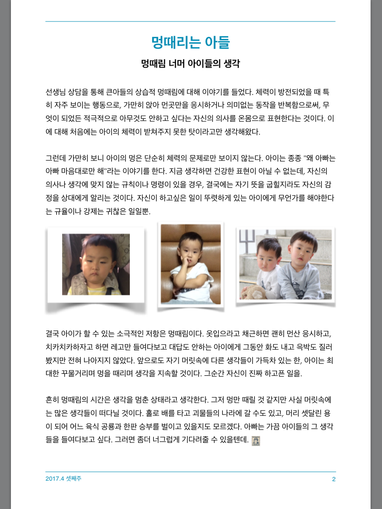 애보고 생각하고 애재우고 글쓰고