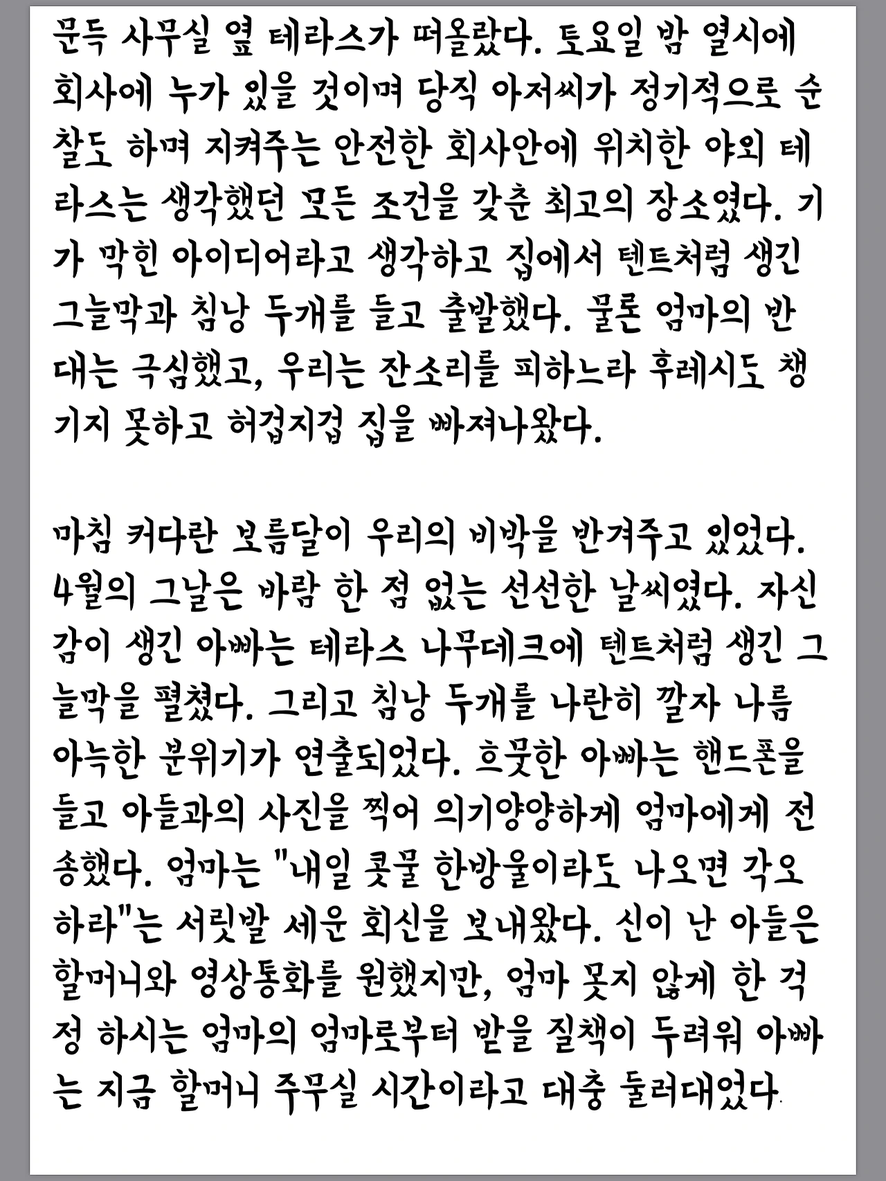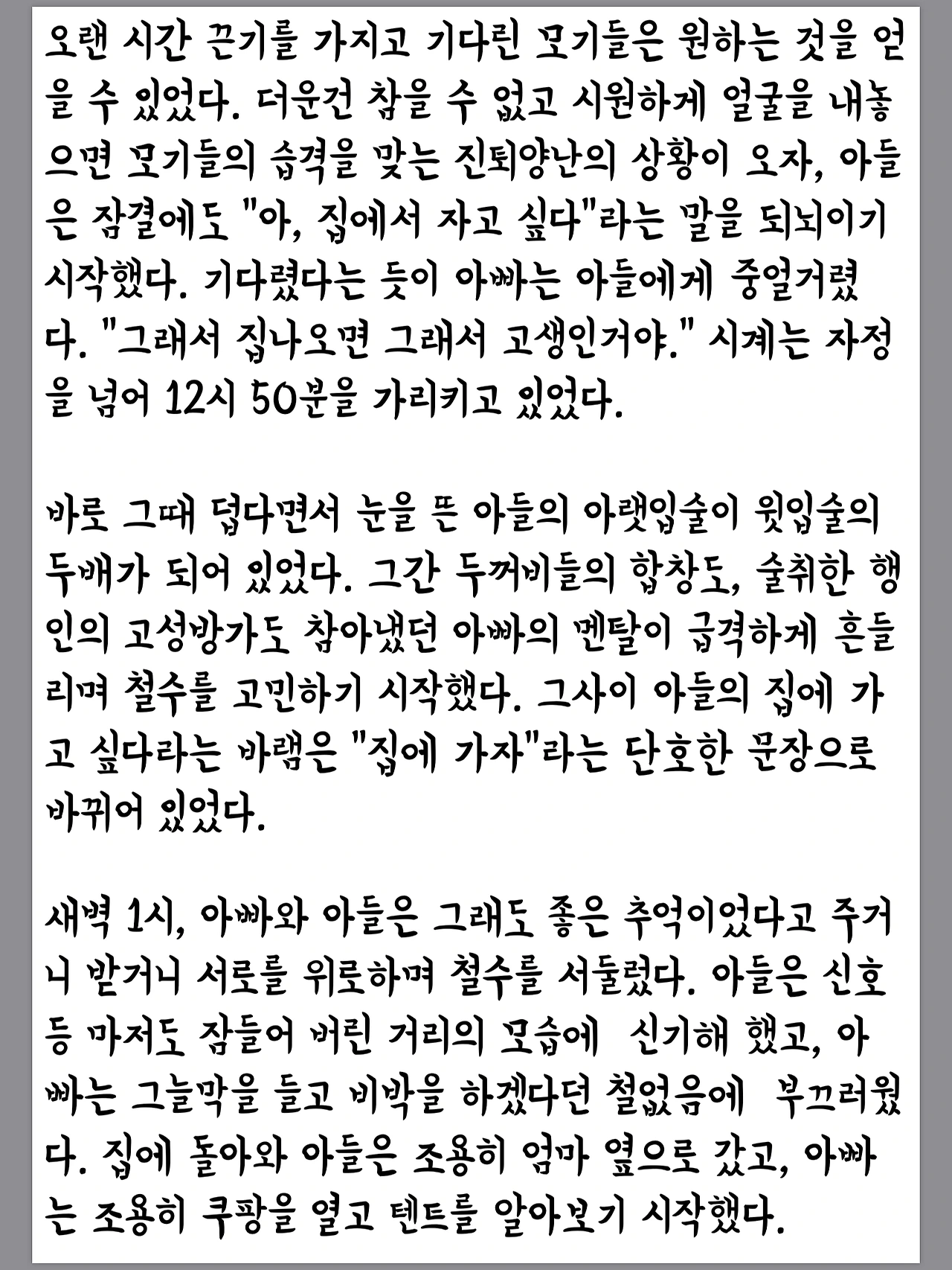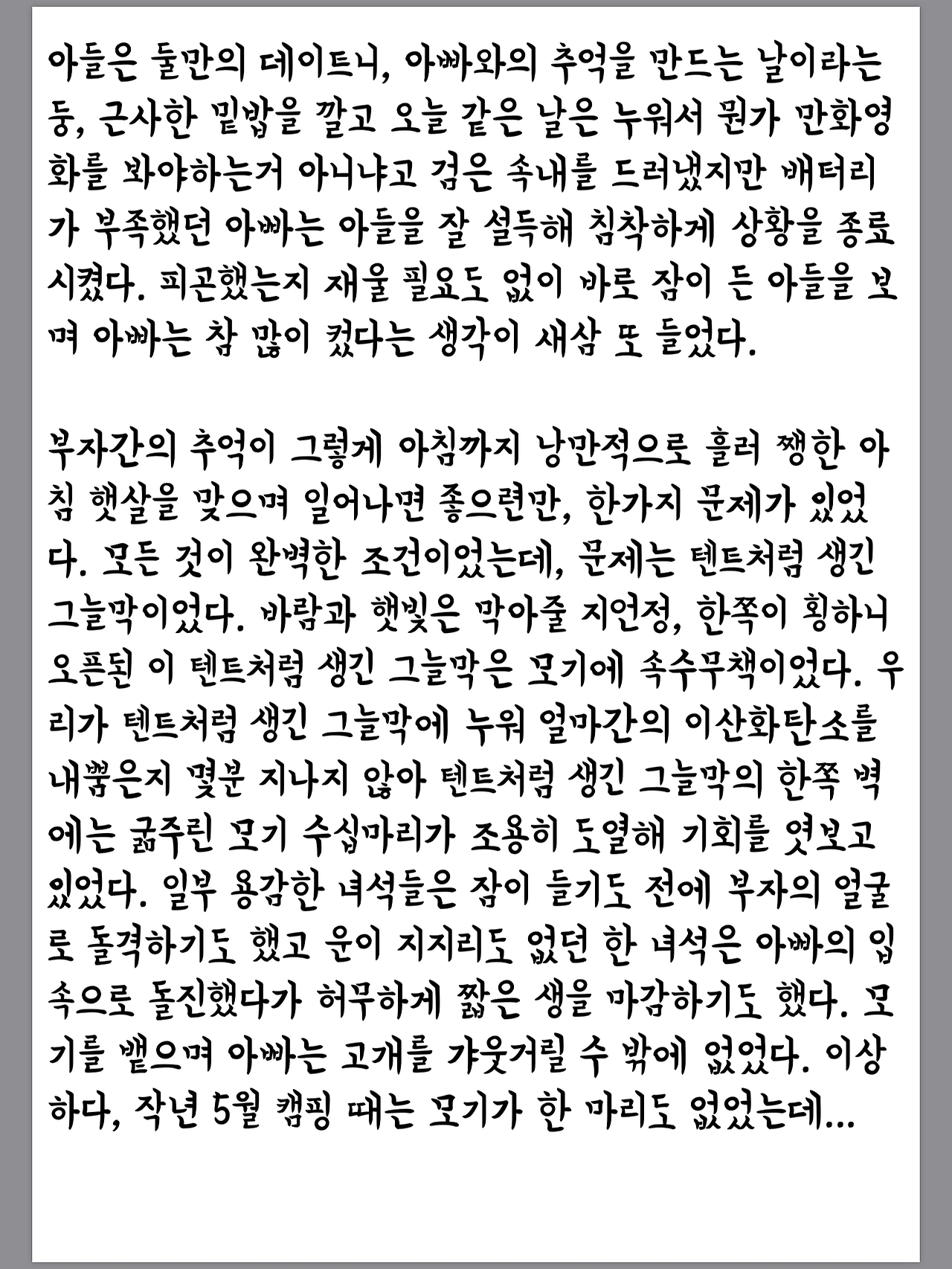 애보고 생각하고 애재우고 글쓰고