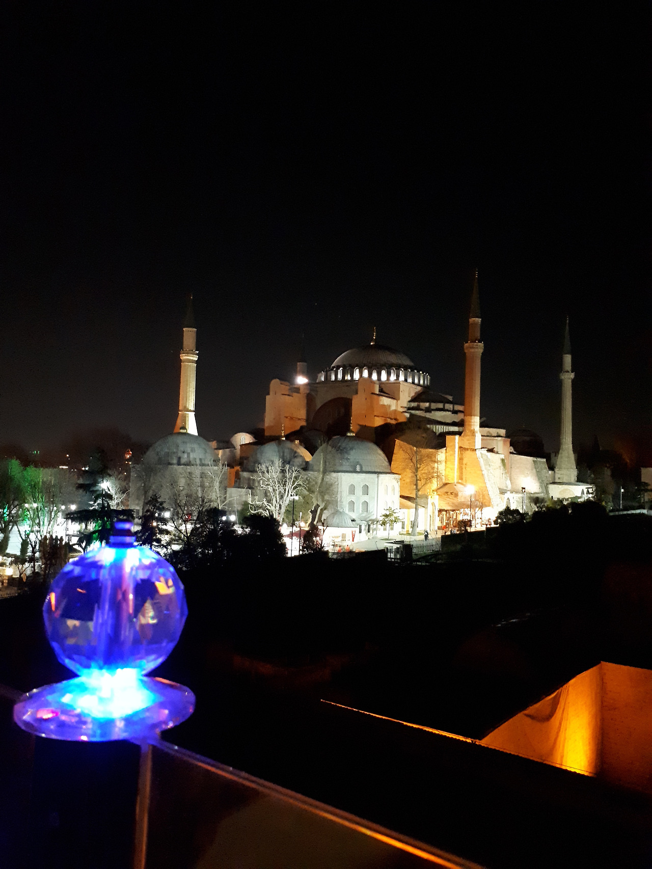 <동로마시대 AD 6세기에 지어진 아야 소피아 성당. 밤의 아야 소피아 성당 모습. 지금은 박물관이 되어있다.>