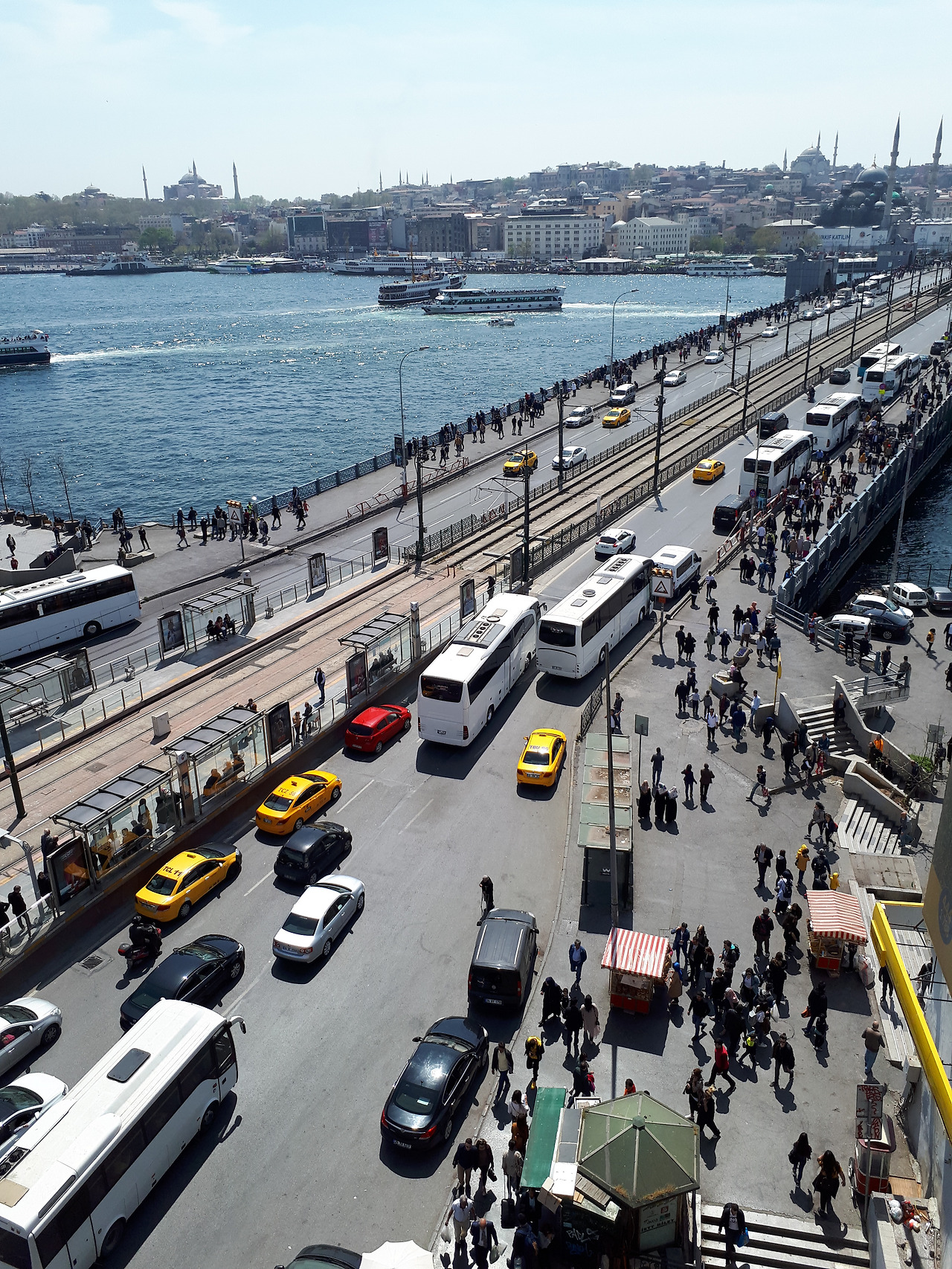 <갈라타의 카라쿄이 지역에서 바라본 갈라타 브리지 모습. 다리 아래로 고등어 케밥집이 즐비하다.>