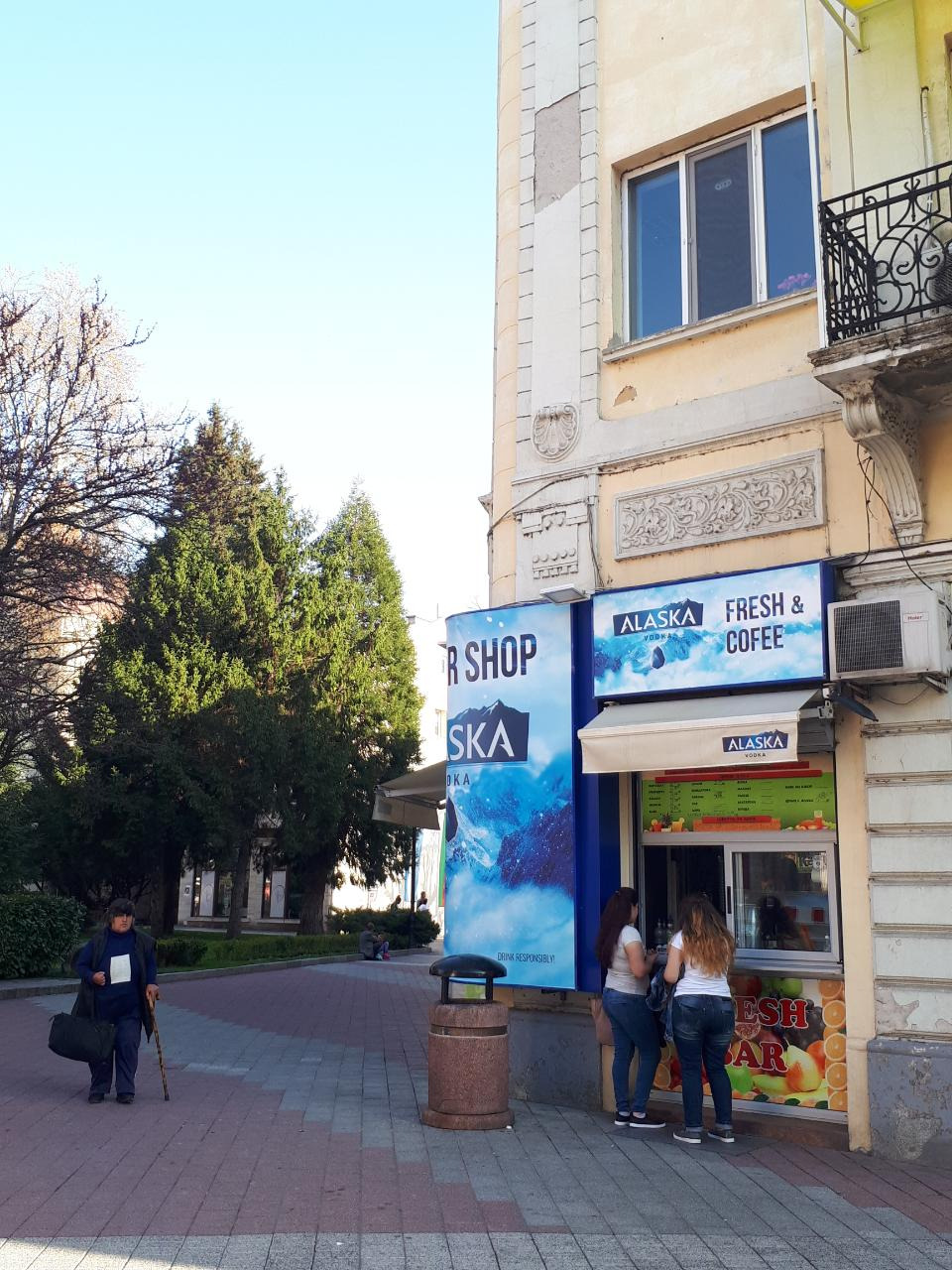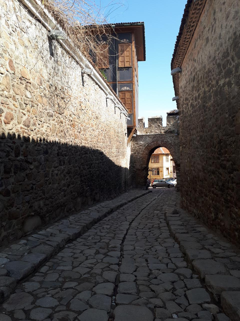 <구도시로 들어가는 입구 쯤 된다. 멀리 보이는 대로를 건너면 플로브디프 시내 카페 거리>