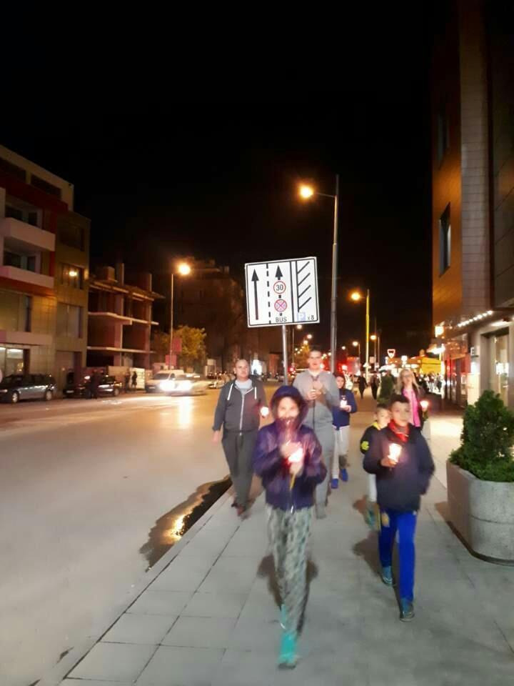 <부활절 자정 미사를 마치고 촛불을 들고 귀가하는 사람들>