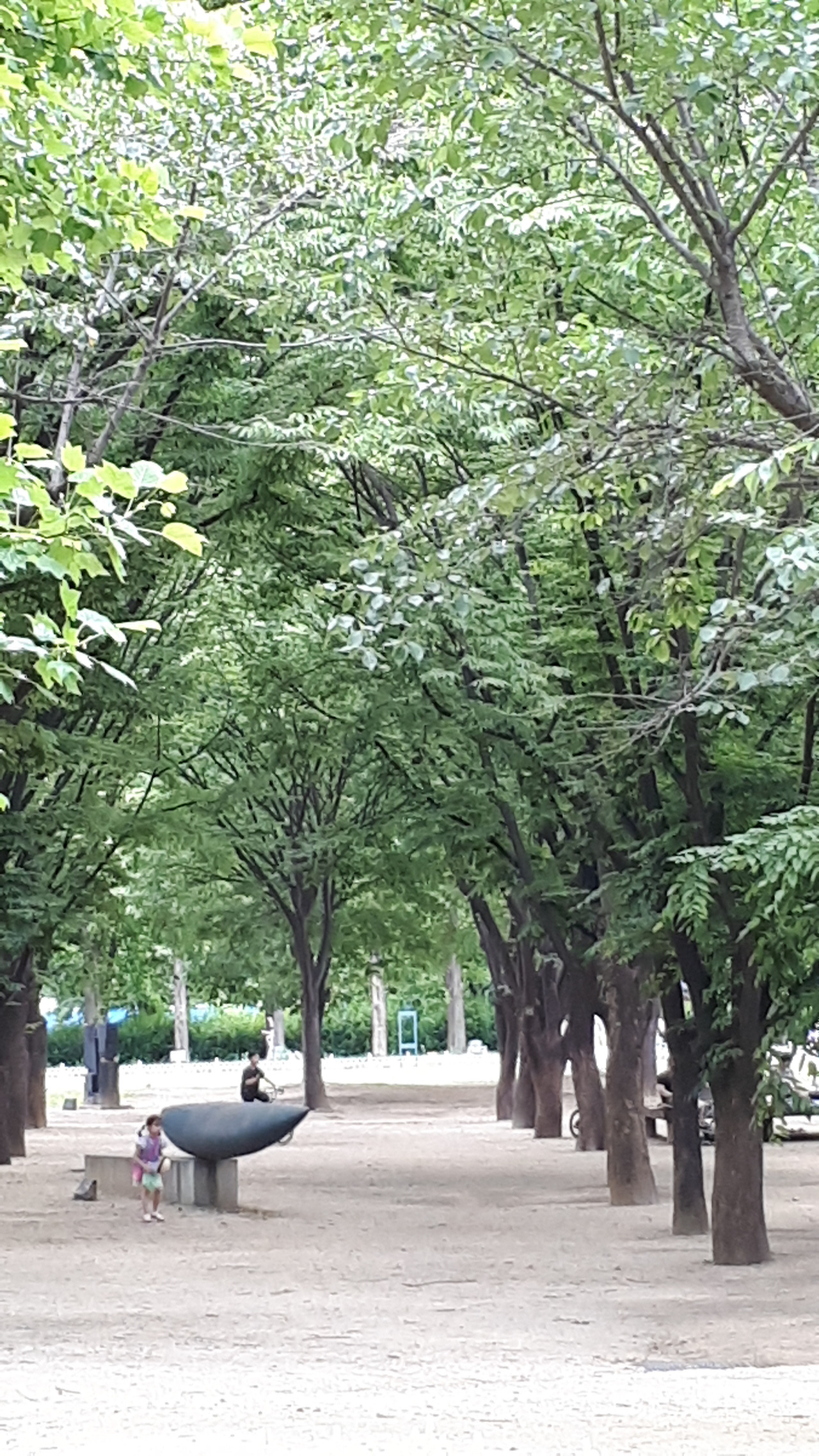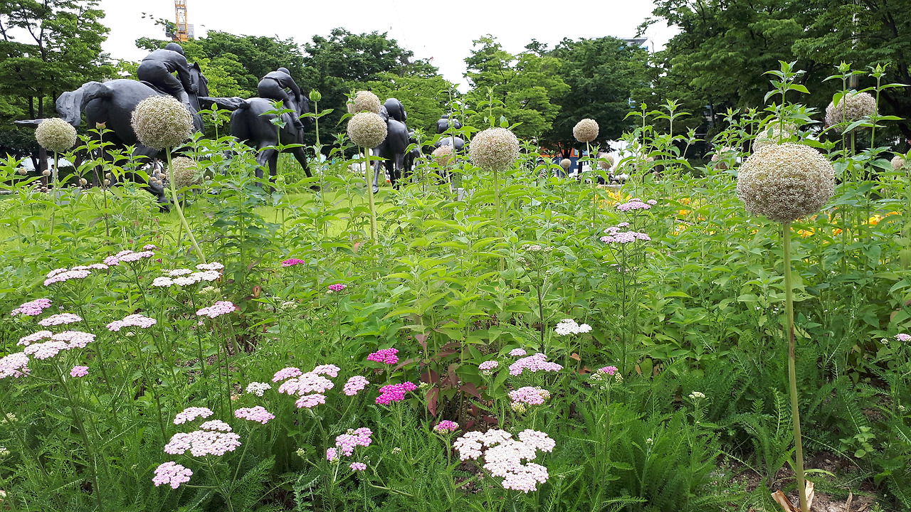 훌쩍 큰 해바라기가 창문에 그림자 던져놓고