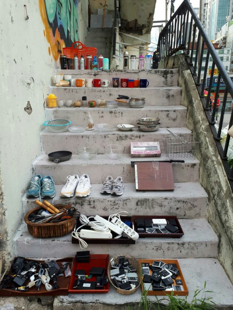 계단에 나열된 물건들은