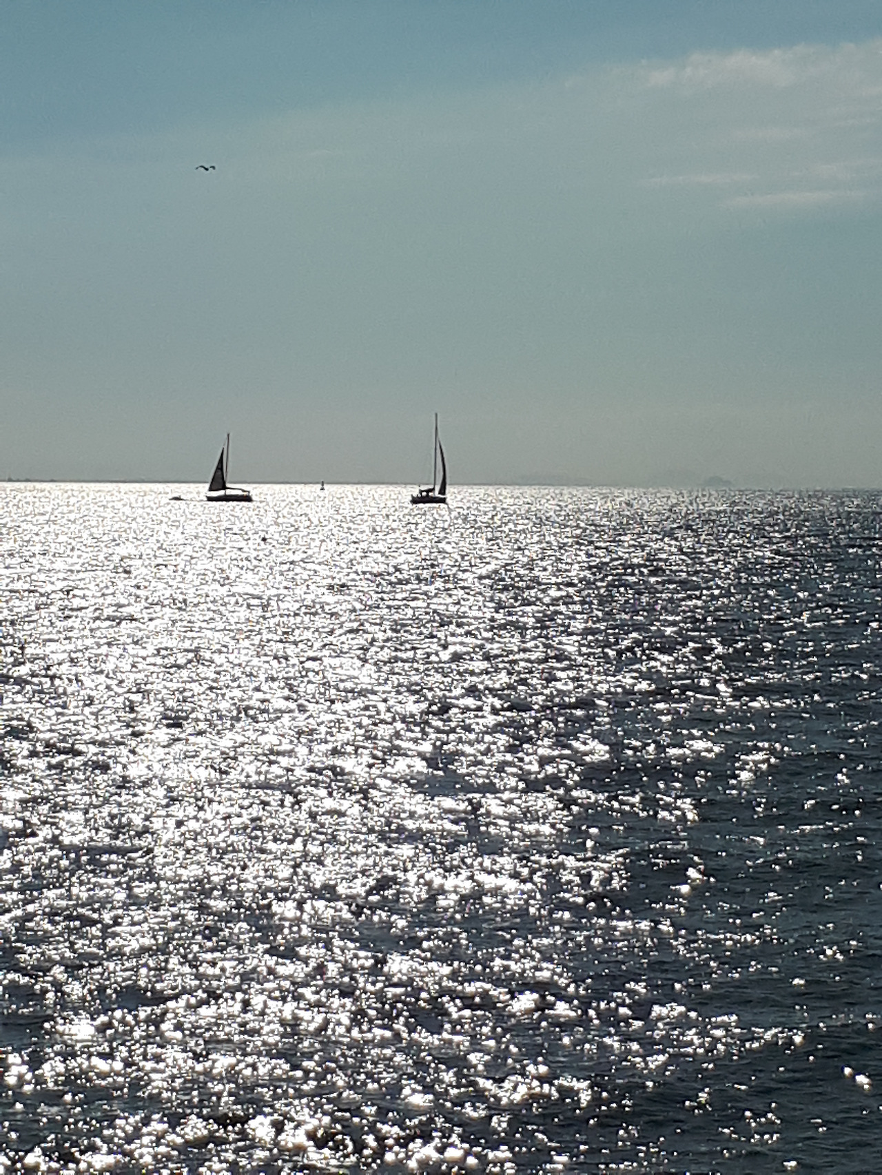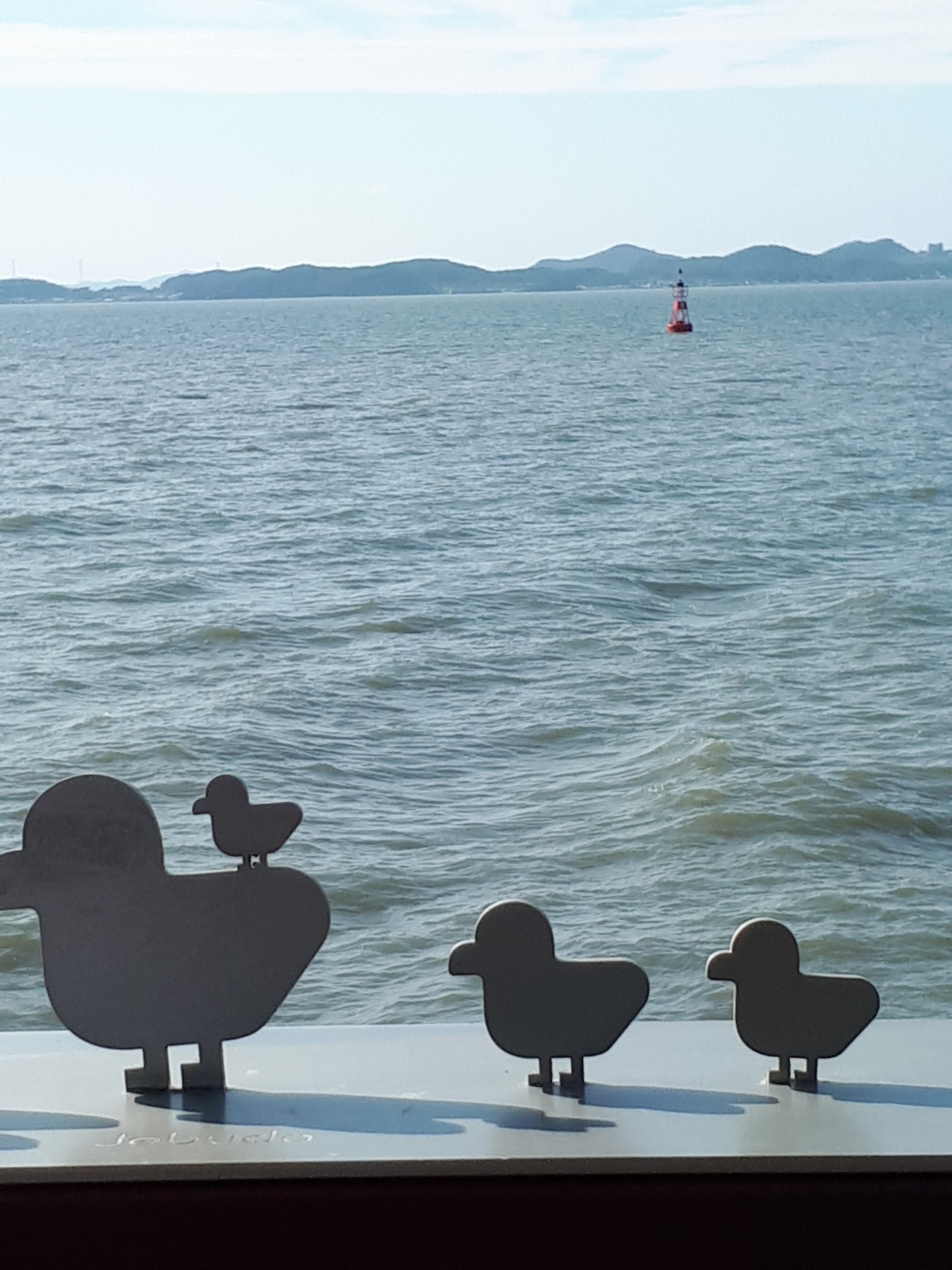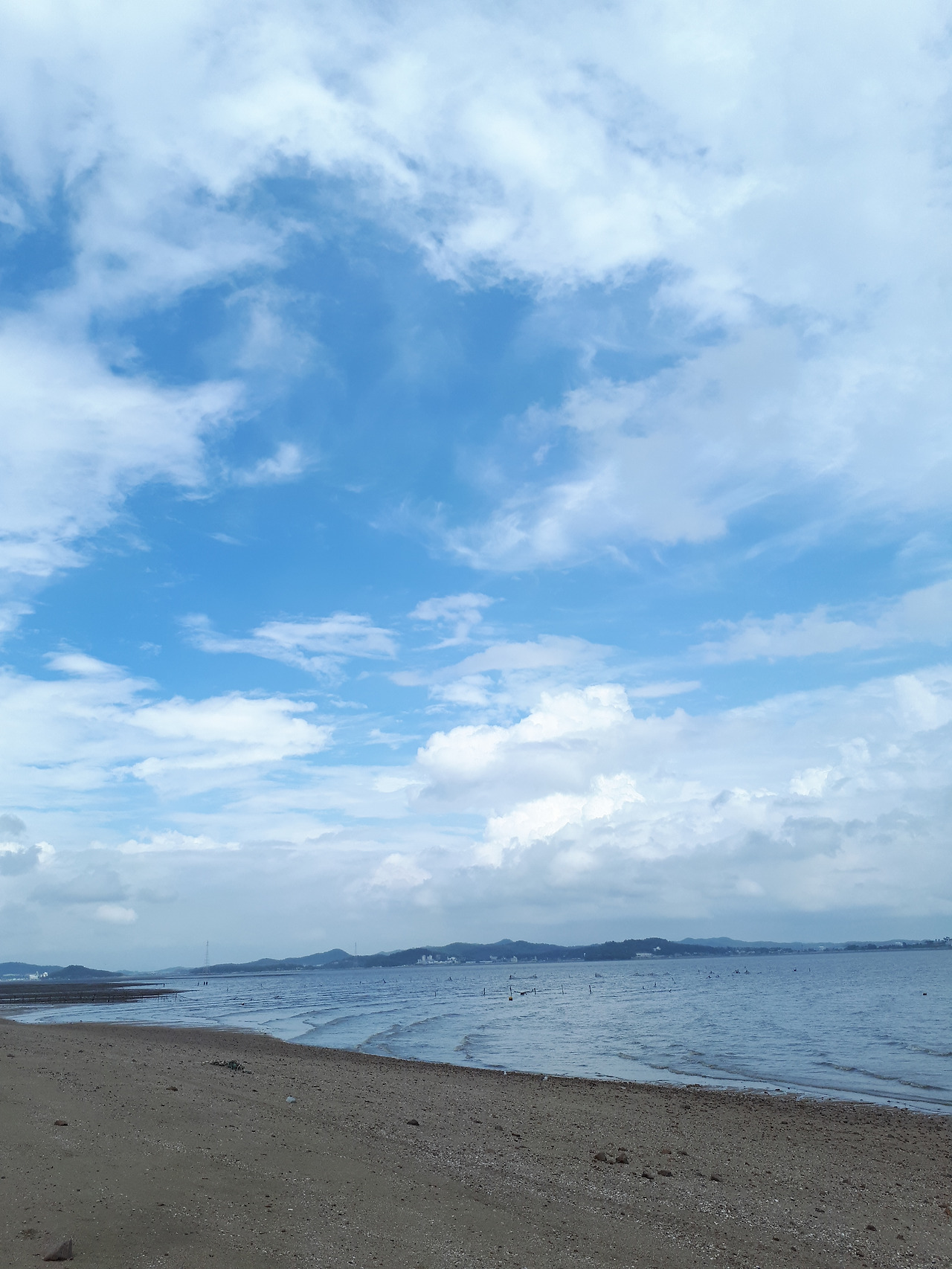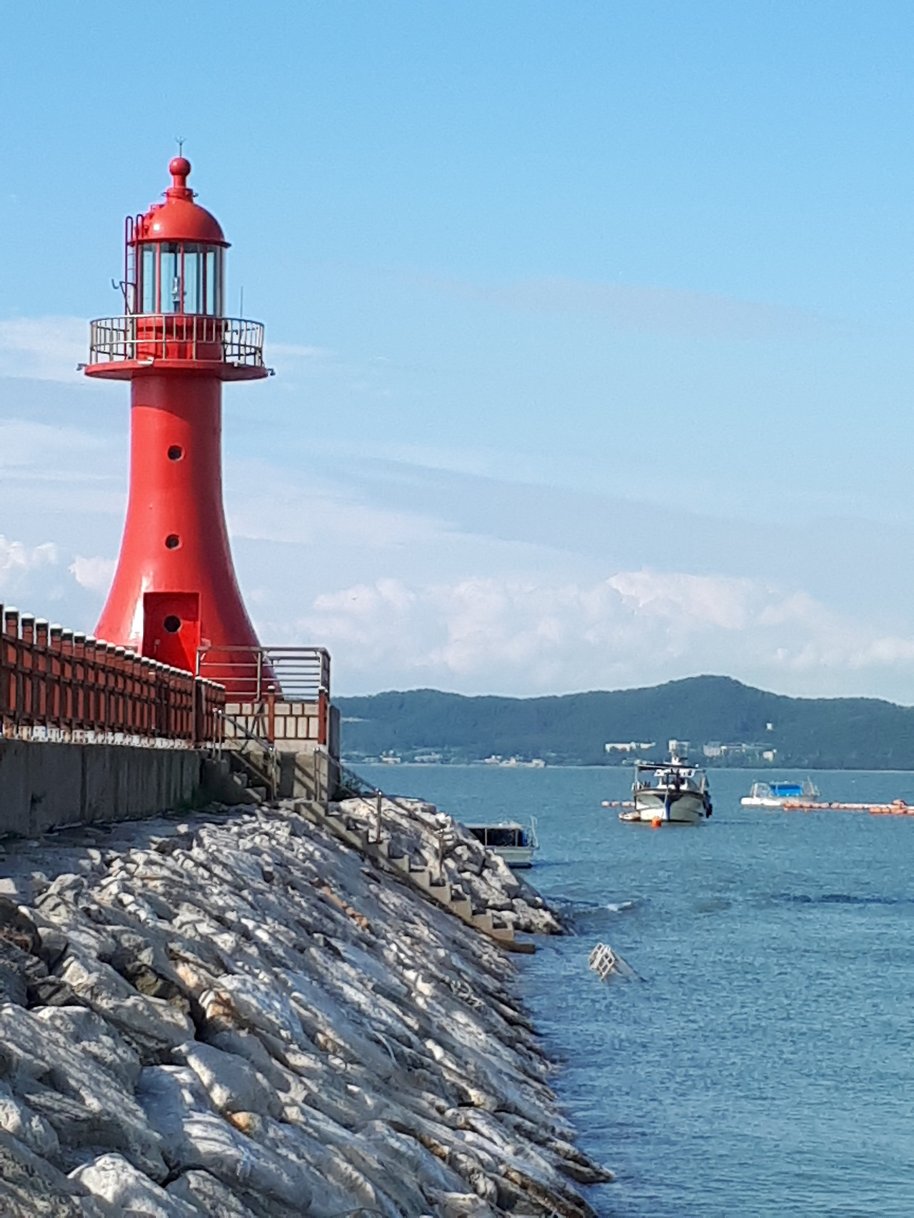 푸른 줄무늬는 바다에서 가져온 빨랫줄이다 가지런히 늘어놓고 또 천천히 겹치면 바둑판이 되고 거기 하늘이 산다 날아가던 괭이갈매기는 화들짝 놀라 집으로 돌아간다 하지만 가마우찌의 검은 날개짓이 내려앉아 또 검정색 바둑판 줄무늬를 놓는다 그 사이에는 파도가 만들어 놓은 흰 무지개가 있고 일곱 빛깔 웃음이 바다로 간다 작은 배들은 뭐가 그렇게 우습냐고 퉁퉁대며 흰 꼬랑지를 물 위에 남기고 바삐 작아진다
