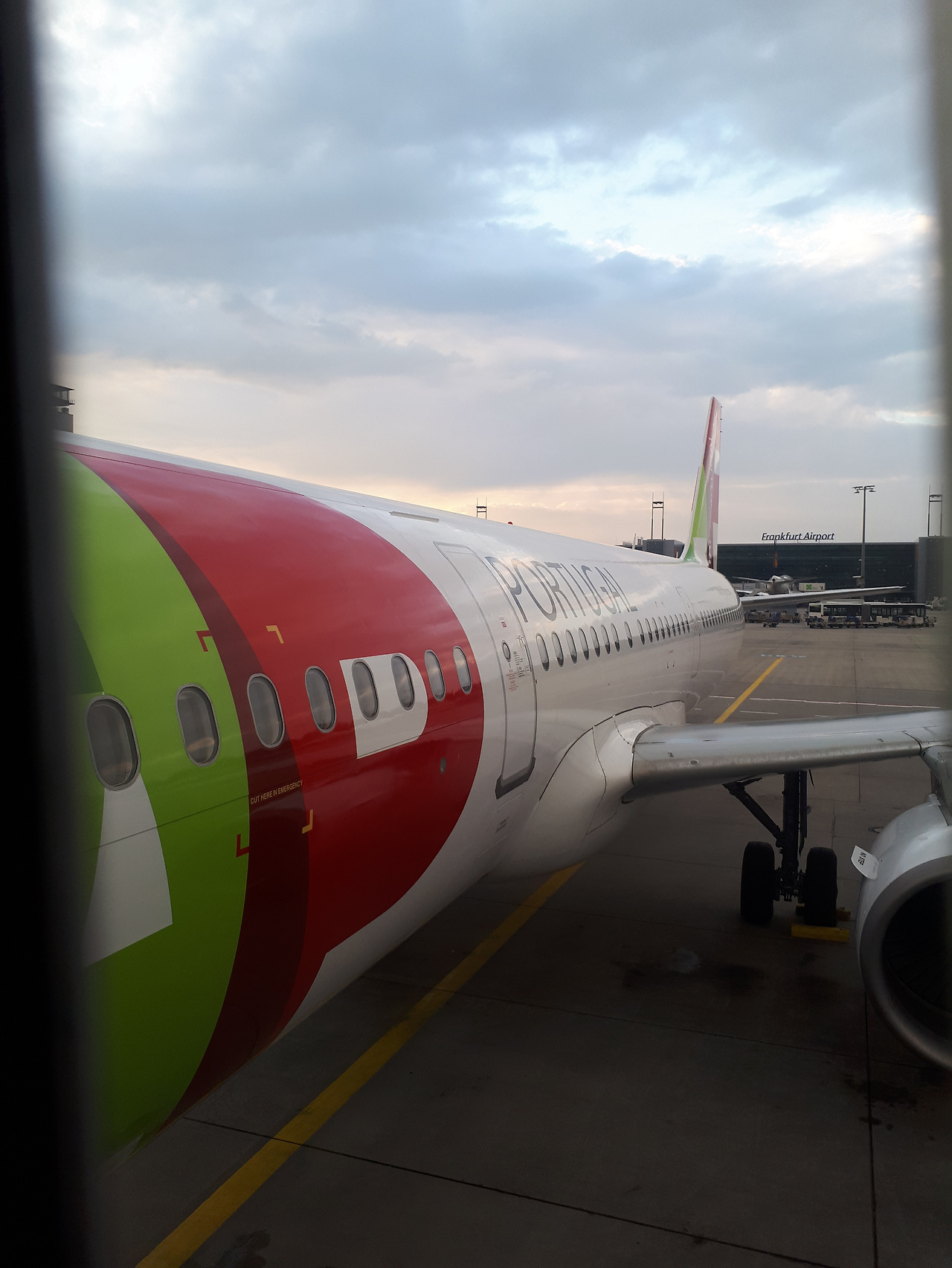 우중충하고 서늘한 프랑크푸르트 날씨가 공항을 짓누르고 있다. 옮겨 탄 포르투갈 비행기에 까무잡잡하고 탱탱한 모습의 승무원 꾸냥은 한 눈에 봐도 1974년까지 포르투갈령이었던 아프리카 까보 베르데 혼혈 쯤 되어 보인다. 독특한 모습 때문에 사진을 찍었더니 알리바바와 40인의 도적에 나오는 산적 두목같이 생긴 남자 승무원 놈이 찾아와서 사진 찍으면 안 된다고 지랄한다. 그래서 알았다고 하고 다 지웠다. 별 걸 다 지랄이다.