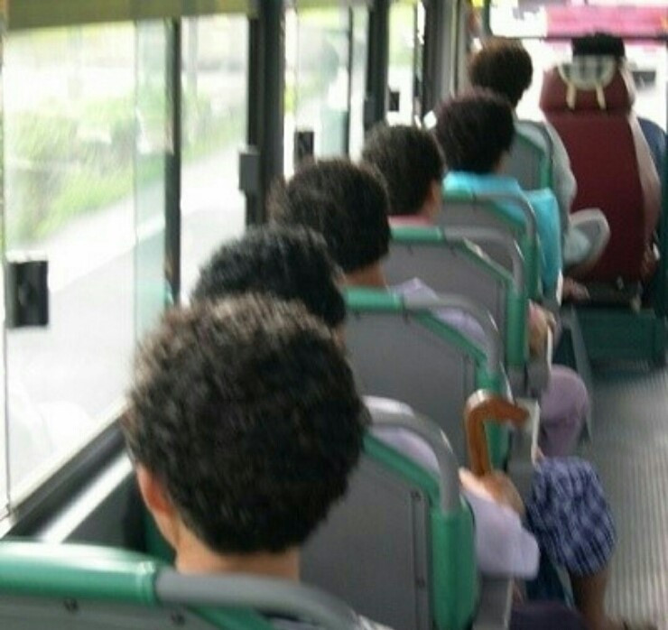 버스는 늘 앞 자리에 앉은 이의 뒷통수를 보고 앉아야만 하기 때문에 두상 연구에는 아주 적절한 차종이다. 하지만 백날 봐야 뭘 알아야 면장이라도 할텐데 개뿔이나 아무 것도 모르니 그저 의미 없는 눈동자만 앞 사람 뒷통수에 꽂혀 있다. 일준이 엄마처럼 바글바글 볶은 아지매 머리, 치렁치렁하게 긴 생머리, 노랗게 물들인 데서 까만 머리가 새싹처럼 삐져나오기 시작한 머리, 웨이브가 굵은 머리, 그도 저도 아니면 지글거리다 떡진 머리 등등 다양하다. 또는 헐렁하게 빠져버린 대머리, 촘촘하고 새까만 머리, 모자를 푹 눌러 쓴 머리, 꼬이다 갈린 머리가 있기도 하다.