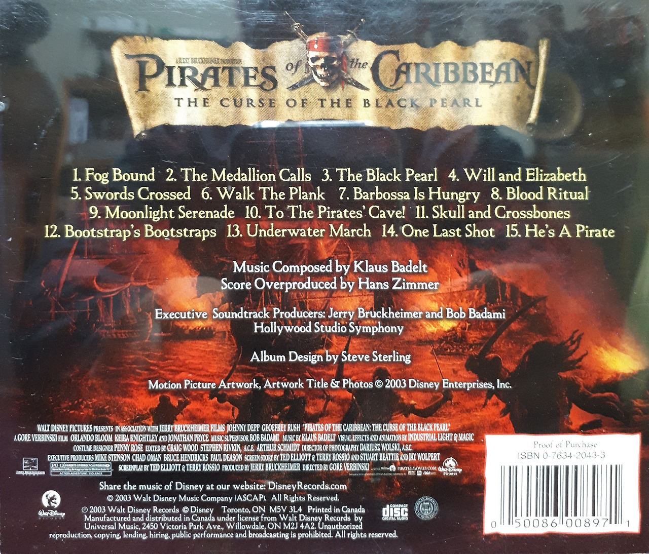 그러나 지금 이야기하고 싶은 영화는 좀 다르지 않나 싶다. 선과 악의 구분도 묘하고, 또 원작 소설이 있는 것도 아니고, 베낀 만화 원작이 있는 것도 아닌데도 재미있다. 게다가 모험담에 판타지까지 지닌 월트 디즈니의 이 영화를 필자가 가장 높이 평가하는 것은 영화 OST(Original Sound Track)이다. 영화를 보는 내내 참 놀라웠다. 이 영화는 시리즈로 현재까지 다섯 편이 개봉되었고 별도 CD로 발매한 OST는 세 종류이다. 그 가운데 단연 '블랙 펄의 저주' OST가 압권이다.