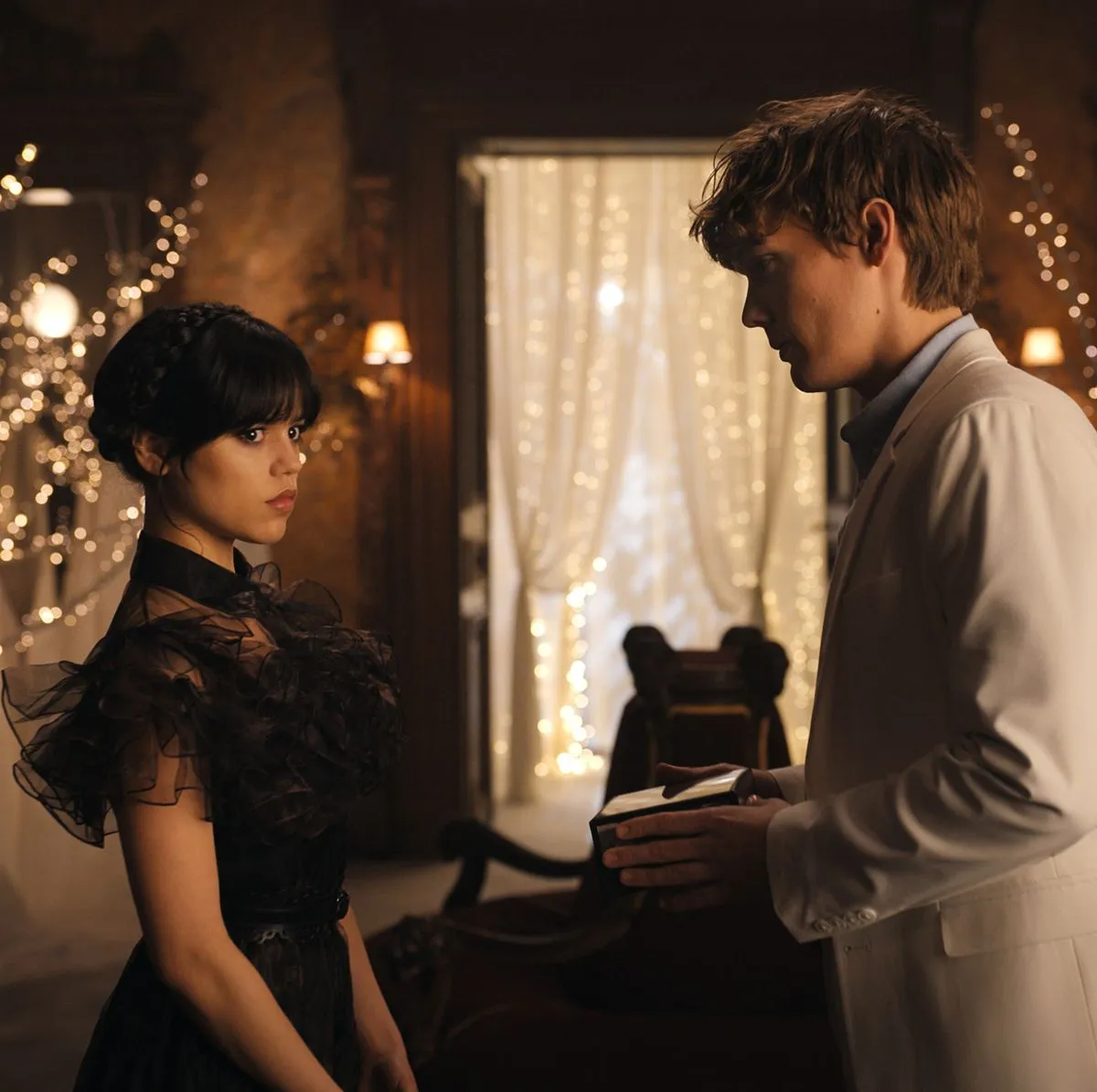 이번에도 팀 버튼 영화에 자주 등장하는 별종 소재로 눈길을 사로잡는다. '미스 페레그린과 아이들'과 같은 소재에 '다크 섀도우' 같은 호러스러운 분위기를 입힌 그의 주특기로 돌아온 것이다. 웬즈데이는 전갈을 애완동물로 키웠던 적이 있는 만큼 기괴하고 호러스러운 분위기를 자아내며 직설적이고 날카로운 말로 학교 안에서도 '자발적 왕따'를 자처한다. 그는 세상 속 통념에 대해 비판하며 따뜻함이라고는 눈 씻고 찾아봐도 없는 존재인 것처럼 행동하지만 수사를 위한 것이라는 명목으로 룸메이트인 이니드에게 못 이기는 척 모든 학교 행사에 본의 아니게 참여하며 인싸의 삶을 살게 된다. 그리고 오글거리는 것은 딱 질색인 그가 타일러와 썸을 타는 모습과 이니드와 친구가 되어가는 과정 속에서 그도 결국 '센 척 하는 여린 사람'일 뿐이라는 것이 드러난다. 무도회에 참여해 기괴한 춤을 선보이며 매력 발산하는 모습은 웃기다 못해 귀엽다. 이 장면으로 유입되어 보는 사람들 꽤 많았을 것이라고 생각한다.