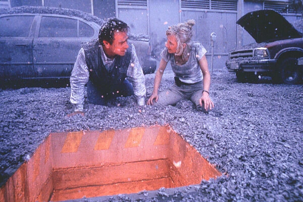 이 영화를 볼 때도 그렇다. 제목이 '볼케이노'이니 화산이 터지는 것은 극명한 사실이고, 지질학자인 에이미 반즈의 친구가 사고를 당하는 모습을 보면서 곧 큰 일이 나겠다는 것은 예감하게 된다. 생각보다 아주 심각하게 깜짝 놀랄만한 사건은 발생하진 않는다는 뜻이다. 그럼에도 이 영화는 끝까지 관람하게 된다.