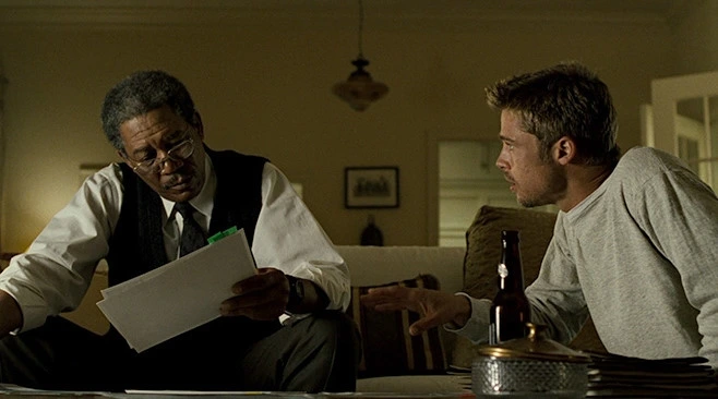 은퇴 직전의 형사 서머셋은 세상을 비관하지만 수사는 기가막히는 자타공인 수사 장인이다. 그와 한 팀이 된 밀스는 패기만 넘치는 열혈 형사인데, 그 혈기가 너무 과해 fucking이 없이는 웬만한 문장이 구사되지 않는 사람이기도 하다. 물과 기름이 따로없는 두 사람은 연달아 발생한 살인사건들이 실낙원, 캔터베리 테일, 단테의 이론의 근간이 된 7가지 죄악(교만, 분노, 나태, 시기, 탐욕, 탐색, 탐식)을 컨셉을 잡고, 살인을 저지르는 있다는 중대한 사실을 알게 된다. 성격은 안맞아도 합은 잘맞는 것 같은데, 이 두 조합 기대가 된다.