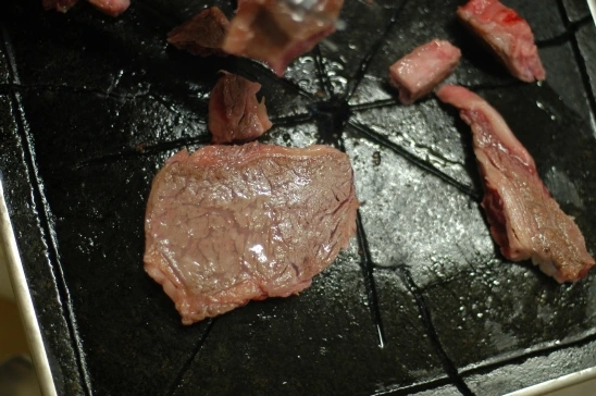 고기를 3 덩이 정도 먹으면 기름이 혀에 끼어 다음번 고기의 참맛을 느끼기 힘들다고 합니다.