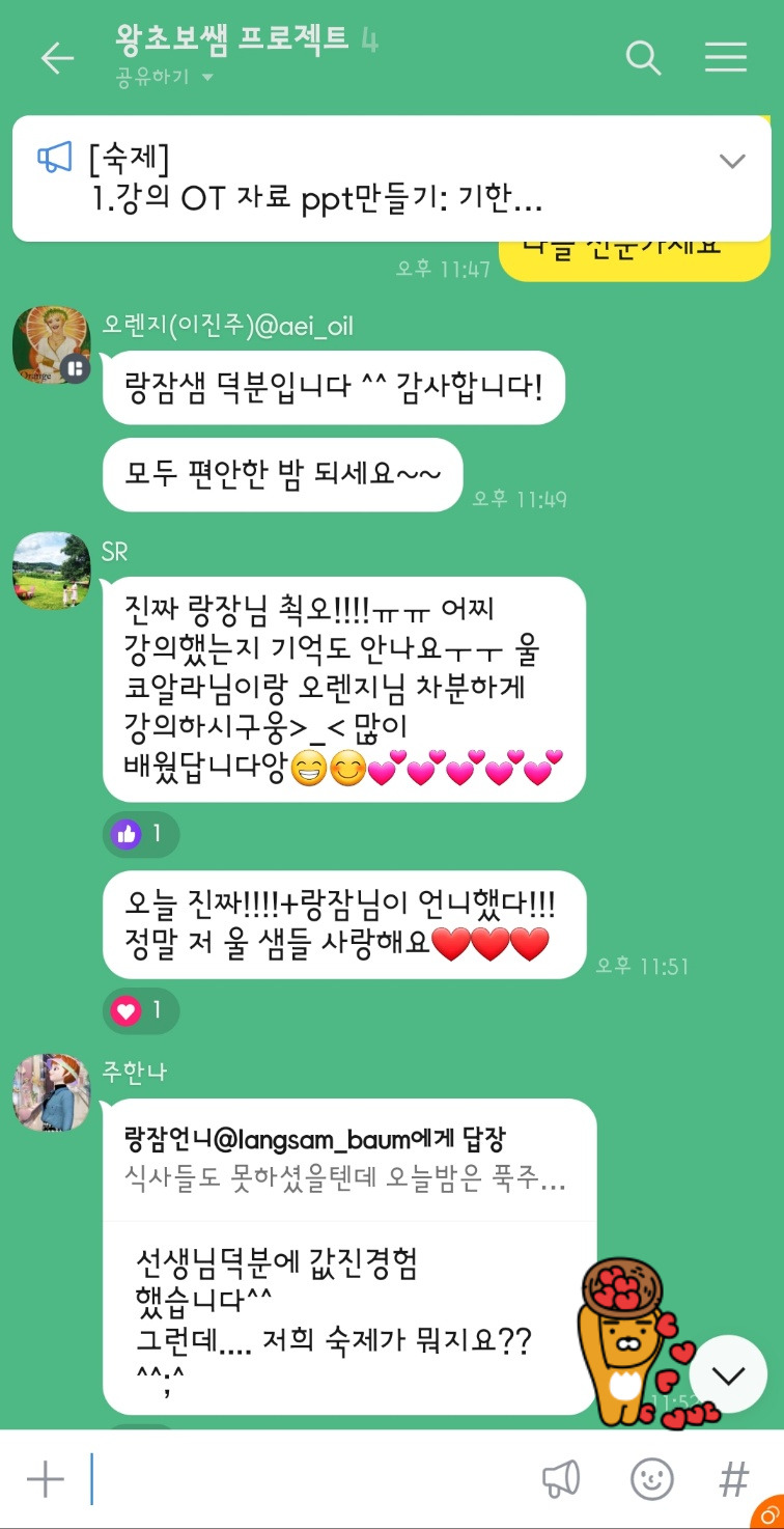 너무너무 완벽했다. 변수가 발생했는데도 위기를 침착하게 잘 대처하고 조근조근하게 강의를 이어나가고 또 시간 내에 완벽하게 소화를 모두 해냈다. 강의 시간 지키는 것이 어려운데 나도 못해서 전날 욕을 바가지로 먹었는데 이들은 완벽했다. 강의에 참여해 준 수강생 모두가 만족해 주었다.