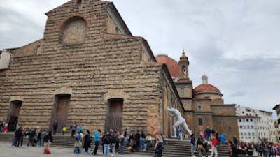피렌체 구시자를 걷고 걸으니 역시 예술 조각품을 박물관이 아닌 길거리에서 많이 만날 수 있는 묘미가 있다. 그런데 어느 교회 앞에서 나는 다시 나의 발걸음을 멈추고 말았다.