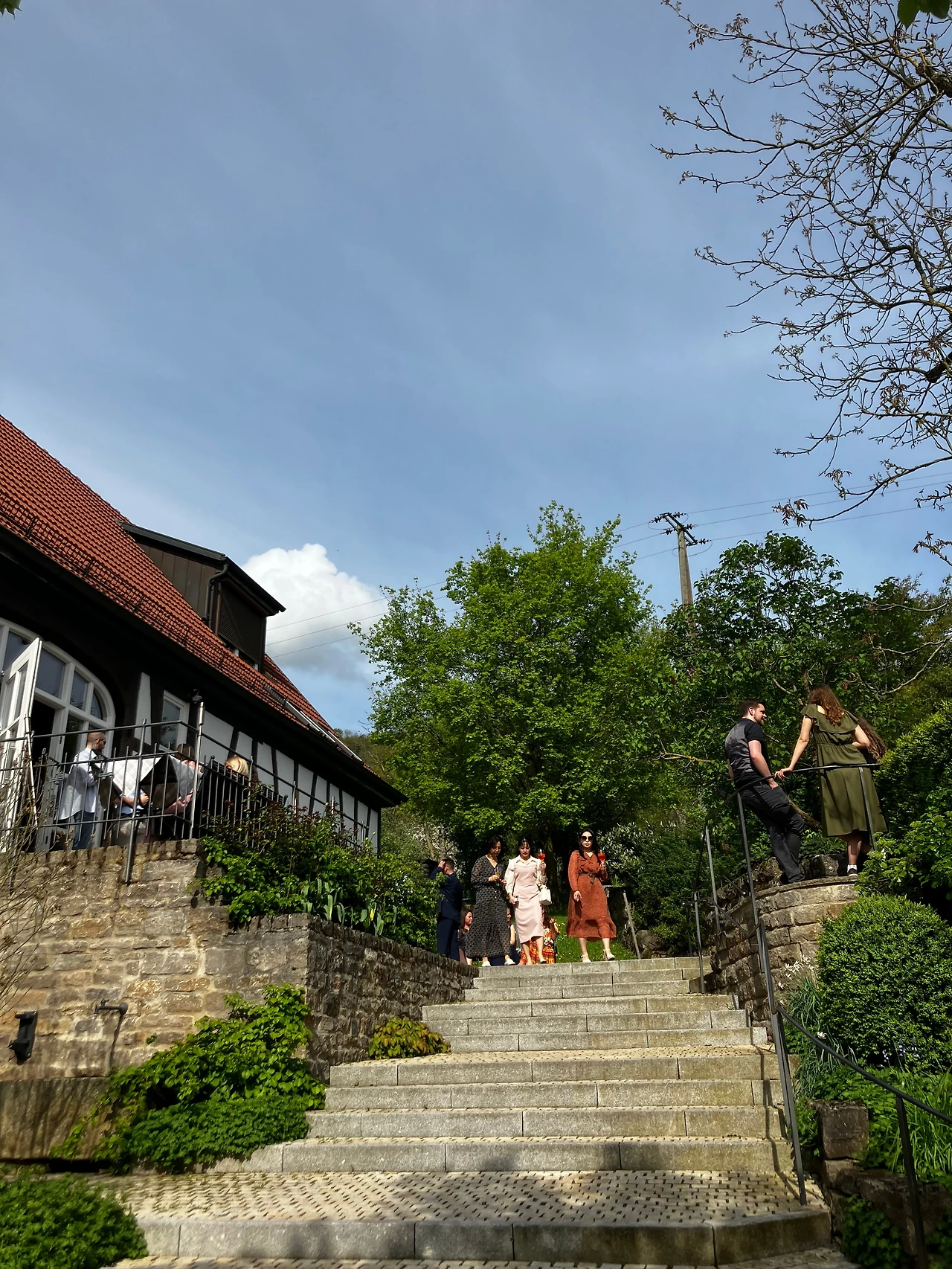 도착한 날을 제외하면 이제야 이틀 째. 그러니까 아직 하루밖에 놀지 않았는데 얼마나 긴 하루였는지 모른다. 아침산책 후 조식을 먹고 결혼식이 열리는 교회로 갔다. 사실 이번에 독일에, 이렇게 간만에 유럽에 올 수 있었던 것은 친구의 결혼식 덕분이다. 여고 친구가 독일 남자와 결혼을 했다. 교회에 도착하자 신부는 아직 보이지 않고 신랑이 하객들을 맞고 있었다. 유쾌한 독일 목사님. 그러나 조용하고 경건한 예식 예배. 정말이지 정겹고 낭만적인 마을의 결혼식이었다. 예식이 끝나고 신랑신부가 행진을 하자 하객들이 모두 그 뒤를 따라 나갔다. 교회 앞마당에서 인사(허그)와 사진촬영과 친교가 있었다. 한 시간 정도. 잠깐 숙소로 돌아갔다가 2시 반의 피로연에 가기 위해 다시 나왔다. 다른 하객의 차를 얻어 타야 했다. 피로연은 시골 깊숙이에서 열렸다. 바 및 카페, 식당, 호텔이 함께 있는 곳. 왜 그렇게 멀리까지 가나 싶었지만 도착해 보니 충분히 그럴만했다. 밤이 깊어 갈 때까지, 차를 마시고, 케이크를 먹고, 와인칵테일을 한 잔씩 들고 정원을 산책하고, 그러다 저녁 식사를 하고. 저녁 식사는 4개의 코스요리가 정말이지 4시간에 걸쳐 나왔다. 사이사이 게임도 하고 신랑신부를 위한 여러 이벤트도 하고, 신랑신부의 왈츠도 감상하고 우리도 함께 댄스에 동참하고…