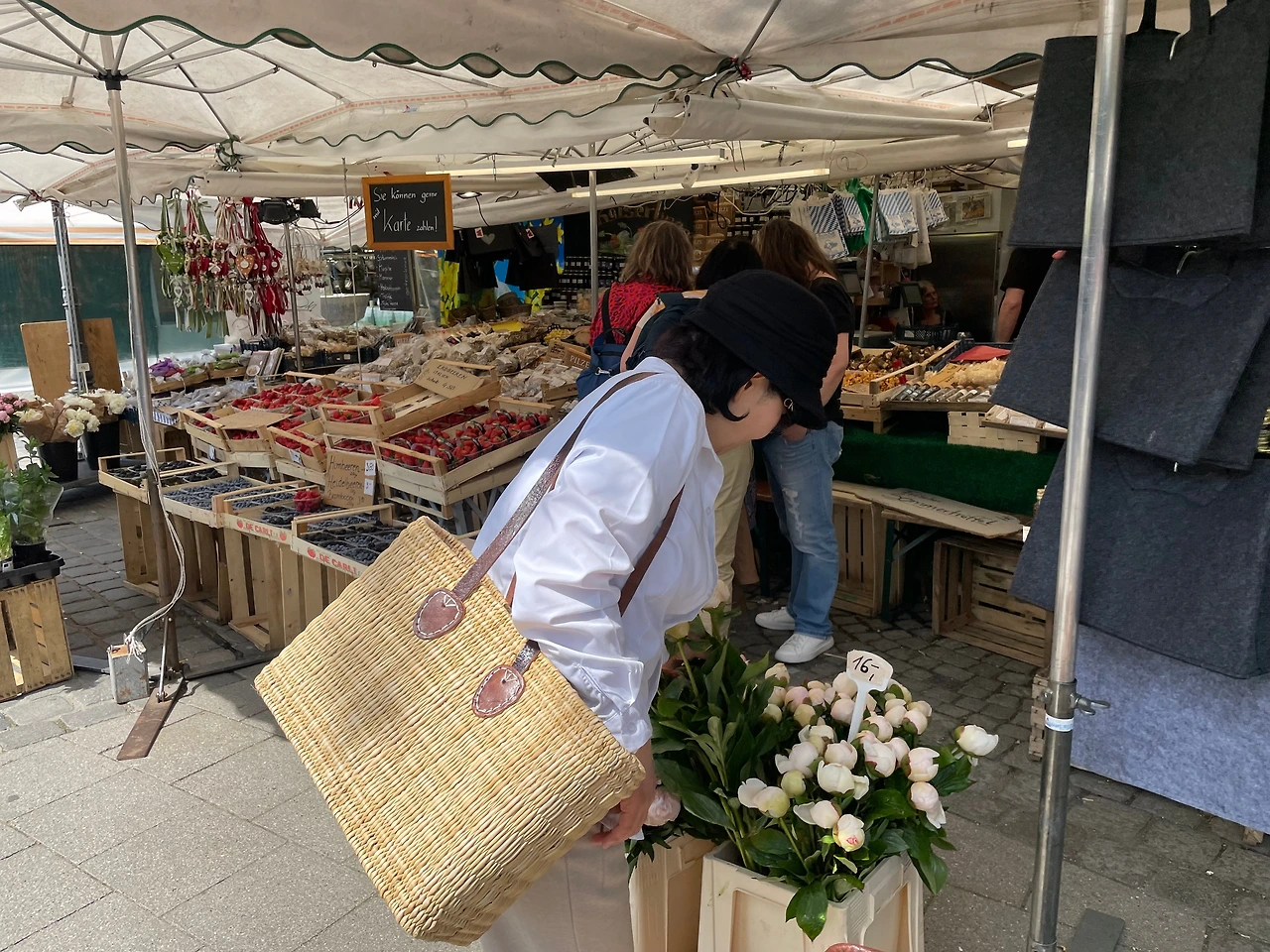 가장 먼저 빅토리아 시장(Viktualienmarkt)에 가서 하얀 소시지와 프레첼(Weisswurt mit Brezeln), 그리고 카레소시지와 감자튀김(currywurst mit Pommes)을 먹었다. 왠지 그 시장이 가장 기억에 남았고 또 가고 싶었다. 아마도 내가 7년 전에 이곳에 와서 무언가를 가장 먼저 사 먹었던 곳이었던 것 같다. 시장에서 엄마는 원하던, 이곳 시장 분위기에 어울리는 라탄 장바구니도 구입했다.