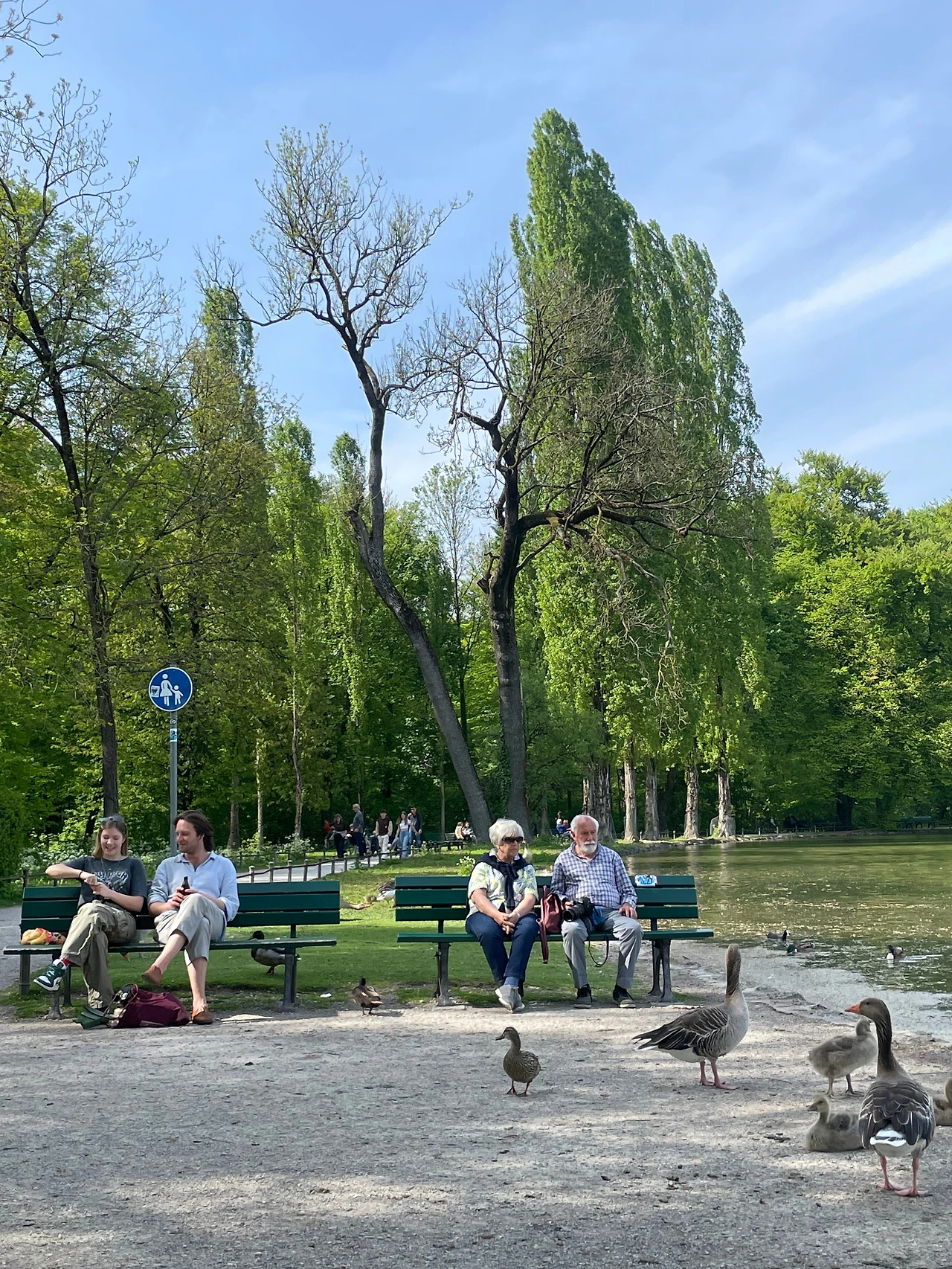 발이 아파 중간에 버스를 탔다. 버스는 영국공원을 가로질렀는데, 영국과의 무슨 인연이 있는 것은 아니고 ‘조성된' 정원이 영국식이라서 붙은 이름이라고 한다. 사람들은 잔디와 물가에서 생의 고단함들을 씻어내고 있었다.