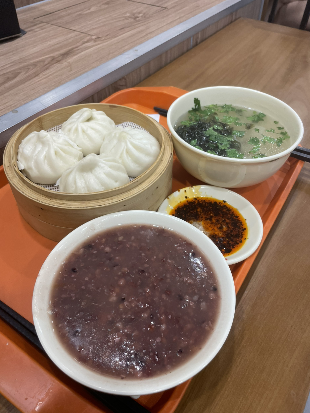 친구네 도시로 이동하는 기차가 매우 여유 있는 시간에 예매되어 있었고 생각보다 공항에서 빠르게 나와 그곳에 이른 시간 도착하여 3시간 정도가 남았다. 우선 기차역에서 점심을 먹었다. 돼지고기가 들어있는 만두에 팥죽인 줄 알았는데 팥죽이 아니라 8가지 곡물이 들어간 수프. 간이나 향신료가 들어가지 않은 따뜻한 물에 밥을 만 것 같은 것이었다. 담백하니 괜찮았다.