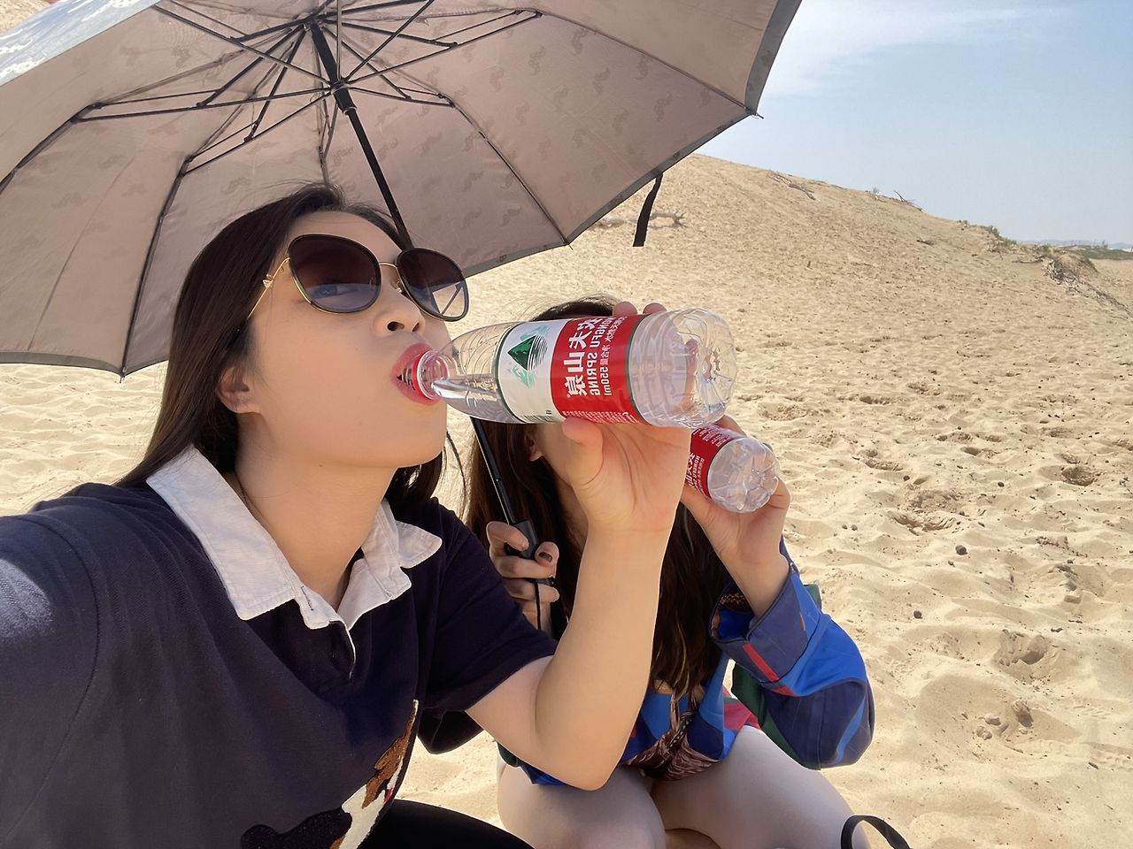 사막 지역의 일부가 국립공원처럼 관리되며 관광객들을 맞이하고 있었다. 입장권을 끊고 들어가면 오를 수 있는 사막 언덕과 낙타 타기, 사륜 오토바이 타기, 모래썰매 타기 등의 액티비티를 할 수 있었다. 가장 먼저 두 발로 모래 언덕을 등반했다. 이것이 정말 사막 기후인지 햇빛이 정말 뜨거워 우리는 선글라스에 우산까지 양산 삼아 쓰고 다녔고 정말 금방금방 목이 타서 물을 계속 마셨다. 땀이 막 나는 것도 아닌데 수분이 도대체 어디로 그렇게 배출되는 것인지 그렇게 물을 마셔대도 화장실 한 번을 갈 필요가 없었다.