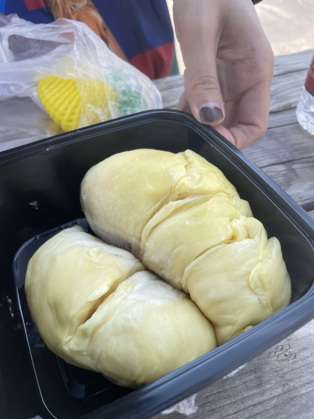 점심은 따로 먹지 않고 어제저녁 먹고 잔뜩 산 과일을 간식으로 계속 먹는 것으로 대신했다. 두리안도 태어나 처음 먹어보았다. 두리안은 발냄새(?)가 나기로 유명한 과일인데, 나에게는 그냥 과일 향이 났다. 설마 내가 발냄새를 과일향으로 느끼는 사람은 아니겠지…? 생각보다 건조한 질감이었다. 아는 맛 같으면서도 새로운 맛이었다. 호박고구마보다도 더 부드러운 고구마 같기도 하고, 아주 부드럽고 크리미한 바나나 같기도 했다.