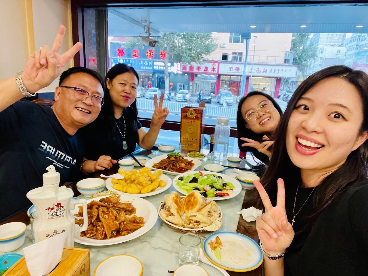기차역에 부모님께서 마중을 나와 계셨다. 다소 긴장하신 모습으로. 두 분의 모습을 보니 매우 안심이 되었다. 인상이 매우 좋으셨기 때문이다. 시원시원해 보이시는 어머니와 귀여운 인상의 아버님. 아버님께서 나의 캐리어를 번쩍 들어 계단을 올라주셨다. 부모님 차에 올라타 저녁을 먹을 식당으로 향했다. 이제야 중국 현지 거리의 모습이 보였다.