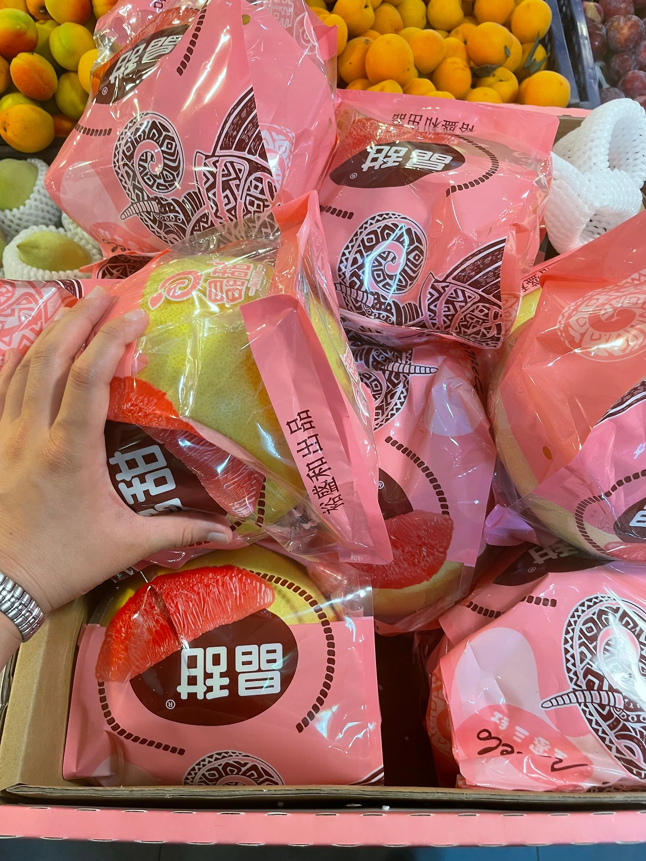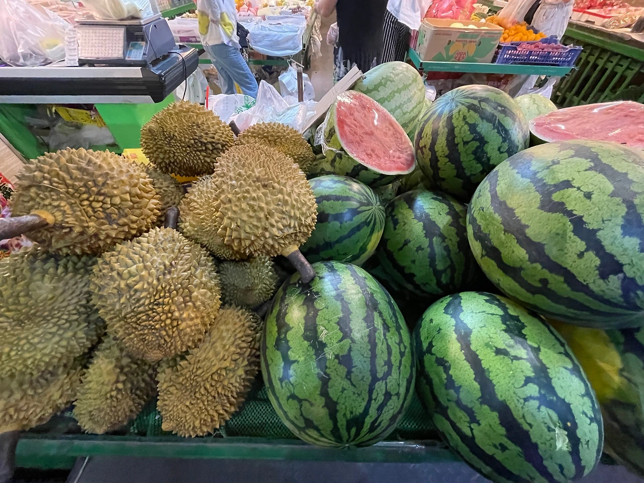 저녁을 다 먹고 식당 옆의 과일 가게에 들렀다. 처음 보는 특이한 과일이 많았다. 빨간색 배, 유럽에서 본 것과는 또 다른 납작한 복숭아, 뾰족한 복숭아, 수박만 한 자몽 등. 내가 신기해하는 것들과 용과, 두리안, 홍매, 처음 보는 색과 모양의 참외 등 과일을 아주 잔뜩 샀다. 땅덩어리가 크니 각종 열대과일부터 각종 기후에서 자라는 과일을 수입이나 하우스 재배 없이도 그렇게 공수할 수가 있나 보다.