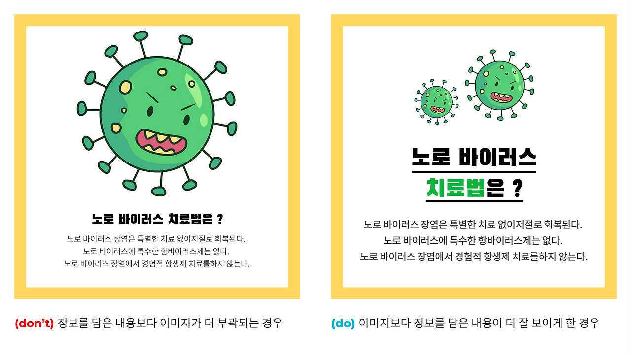 이미지는 내용을 이해하는데 도움을 주는 역할이지 주인공이 되면 안 된다.