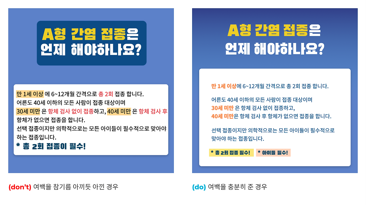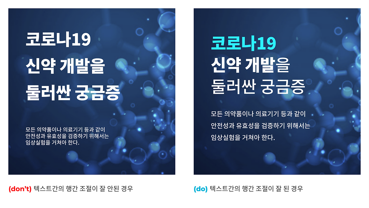 또한 이런 상황일수록 앞서 배웠듯이 적당한 행간과 여백을 주는 것이 중요하다.