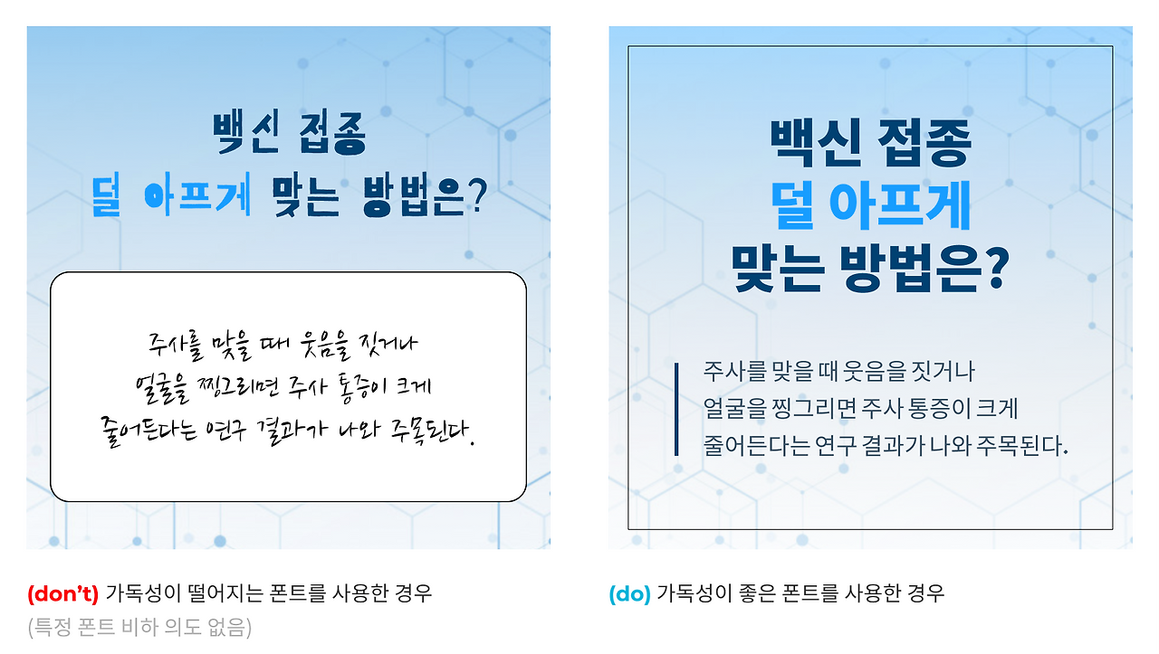 내용 전달이 잘 되기 위한 가장 기본적인 방법은 '글자가 잘 읽히도록 하는 것'이다.