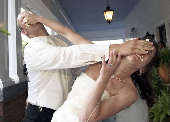 사실 '전통적인 방법'은 케이크 크림을 얼굴에 범벅하는 것인데, 정말 이렇게 했다간 예쁜 화장이 망가지기 원하지 않는 신부에게 평생 잔소리를 들어야할지도 모릅니다. 많은 경우 케이크를 서로 먹어주고 입이나 볼에 약간의 크림을 묻히는 '귀여운 전통'으로 아름답게 마무리되곤 합니다.
