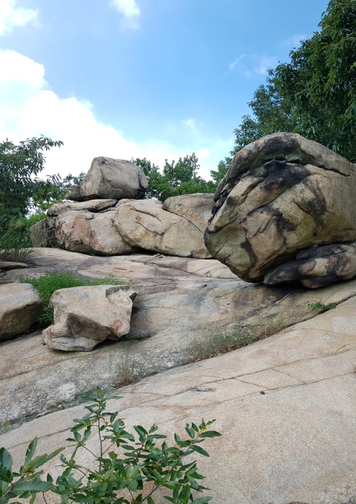 코앞에 다가와 있는 비봉산을 마주 보고 앉으니 그 좌측 뒤편에 삼성산과 관악산이 듬직하게 자리하고 오른쪽으론 안양 시가지와 그 너머로 모락산, 백운산, 광교산이 한눈에 들어온다. 뭉게구름을 머리에 인 관악산은 근육질 팔봉능선의 암릉을 고스란히 드러내고 있다.