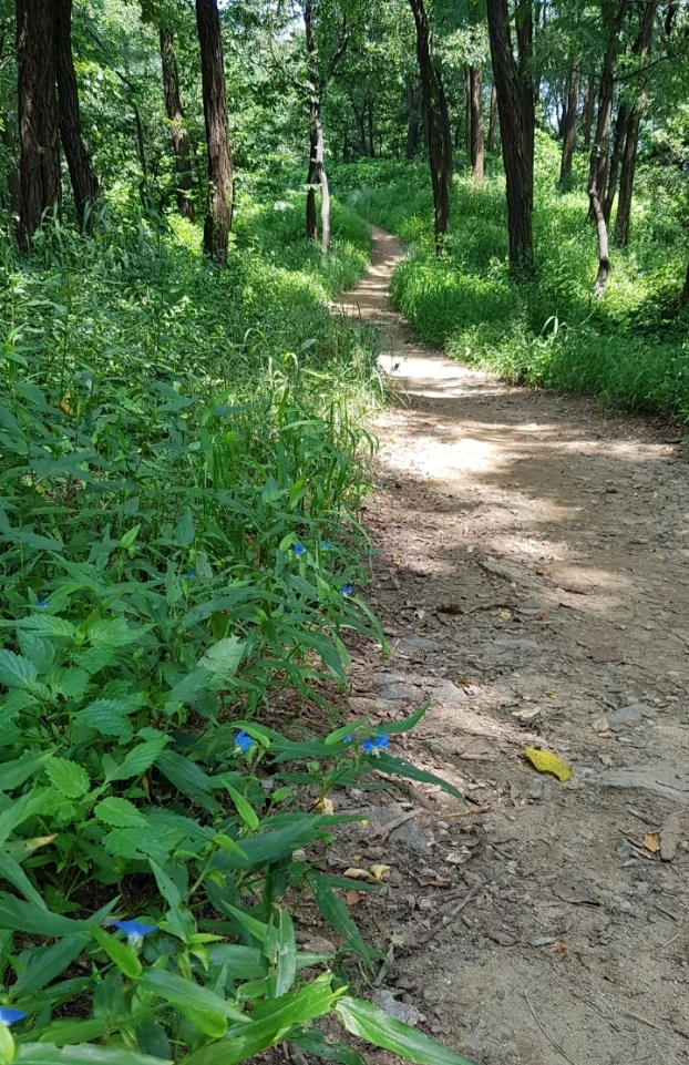 발밑이 푹푹 꺼지는 아카시아 숲 능선을 넘어서서 양궁장 가장자리로 난 둘레길을 거쳐 차를 세워둔 산행 들머리 골목으로 내려섰다. 텅 빈 주택가 텃밭엔 쟁반처럼 큰 토란 잎이 빼곡하고 빈 집 공터에는 얼룩 고양이 한 마리가 주인처럼 어설렁거린다.