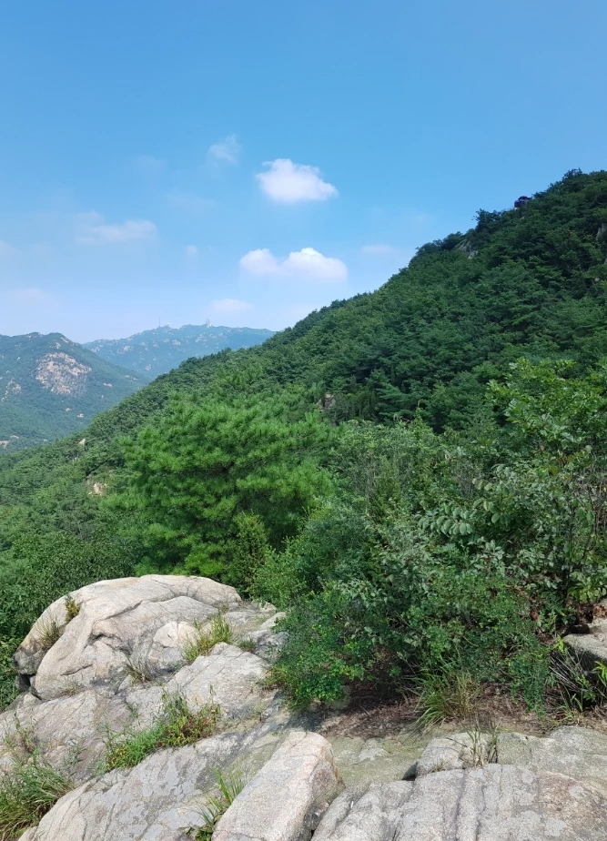 산허리 둘레길을 걷는 사람은 간간이 보이지만 산정으로 향하는 산객은 드물다. 봉긋 솟은 비봉산 산정 아래 가파른 골을 가로지르는 길에 바람이 살랑대며 산객에게 호의를 베푼다. 막바지 가파른 비탈을 올라 정상에 섰다. 하늘과 또렷한 경계를 긋고 있는 주변의 삼성산과 관악산의 준수한 능선을 한참 동안 바라보았다.