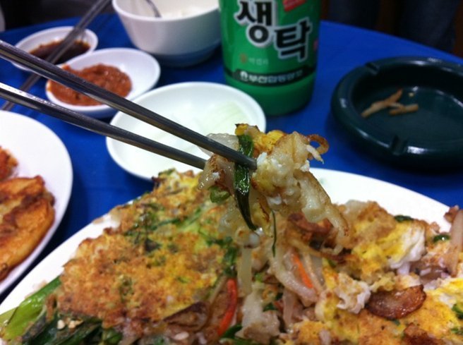 중앙역에서 전철을 타고 부산 초량 두 역을 지나고 부산진역에서 내렸다. 칠 년 전 옛 기억을 더듬어 좌천역을 지나 범일동 빈대떡을 파는 그 식당으로 갔다. TV 먹방 프로그램에 소개된 탓인지 식당 내부는 예전보다 더 넓어졌고 열 대 여섯 개 자리는 빈 곳이 거의 없다.