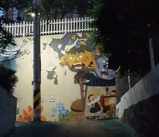 겪어보지 않으면 좀체 알 수가 없는것이 사람의 됨됨이나 성격이다. 겉포장이나 광고에 의존해서 고르게 되는 상품도 상황은 마찬가지다. 그렇지만 선택의 기회도 주지 않고 호기심이나 성적 감성 등 인간의 본성을 비집고 들어와서 소비욕구를 돋우어 주머니를 훔치는 자본주의를 탓하는 사람은 많지 않은 듯하다. 담벼락에 그려져 있는 도깨비가 튀어나올 것 같이 희미한 가로등 불빛의 을씨년스러운 골목길을 지나서 동화마을 초입 자유공원 가장자리로 되돌아왔다.