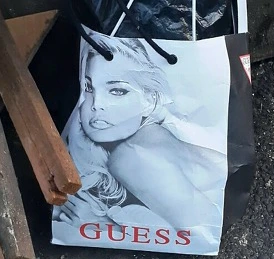동화마을 후미진 골목길 구석에 쓰레기를 담아서 내다 버려진 쇼핑백 속의 여인, 상반신을 드러내고 입은 반쯤 벌린 채 엎드린 농염한 모델이 고개를 돌려 나를 쳐다본다. 동화처럼 기발한 상상의 나래라도 펼쳐보라는 듯 "GUESS"라고 채근하며...마음속 동심이 깜짝 놀라 멈칫한다.