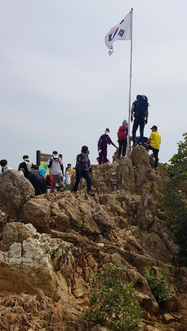 경사진 너덜바위 길을 올라 수리산의 북단에 솟아 있는 해발 426미터 관모봉에 닿았다. 다른 곳에 비해 많은 사람들이 봉우리 위 게양대에서 펄럭이는 태극기를 배경으로 사진을 남기기에 여념이 없다. 산행을 시작한 지 네 시간 여가 지났지만 아직 정오가 되지 않았다. 시간에 쫓기지 않는 여유로운 산행은 접근성이 좋은 집 근처 산을 찾는 이점이기도 하다.