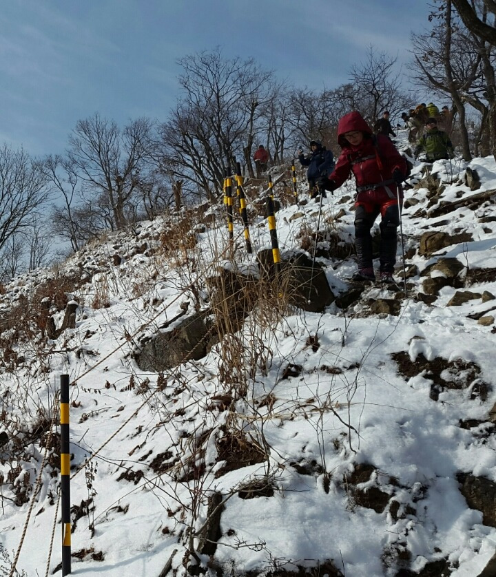 일행의 체력, 코스별 예상시간, 그치지 않는 눈발... 이런 것들을 대중했는지 여섯 시간 눈길 산행은 운길산과 수종사를 다음 기회로 미루게 하고 적갑산을 거쳐 새재 고개 사거리에서 세정사가 있는 진중리로 내려가는 길로 마음을 이끈다.