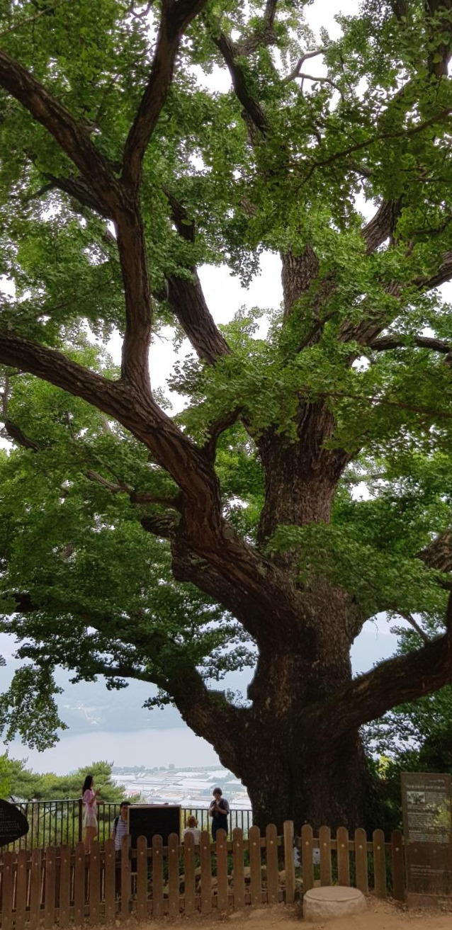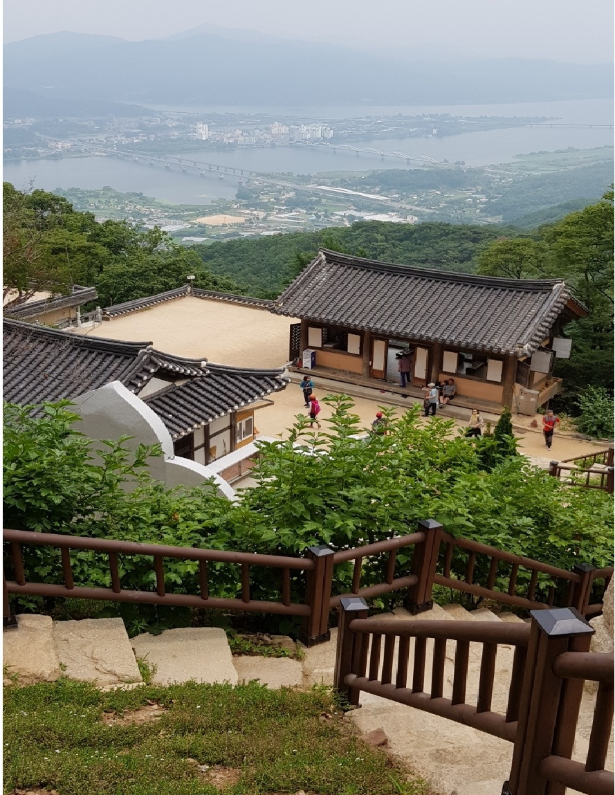 수령 오 백이 넘는 범종각 옆 은행나무는 사방으로 가지를 뻗은 모습이 장대하다. 어느 해 겨울 친구들과 찾았을 때와는 달리 강인해 보이는 가지들 마다 푸른 잎이 무성하다. 아래쪽으로 훤히 내려다 보이는 한강 두물머리 양수대교 강 건너 검단산 해협 정암산 등 장쾌한 풍경 앞에 말없이 연신 카메라 셔터를 눌렀다.